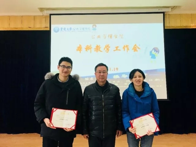 接着,张邦辉为2013-2017年度学院本科优秀教学一等奖、二等奖和三等奖的获得教师颁发了证书,并合影留念。