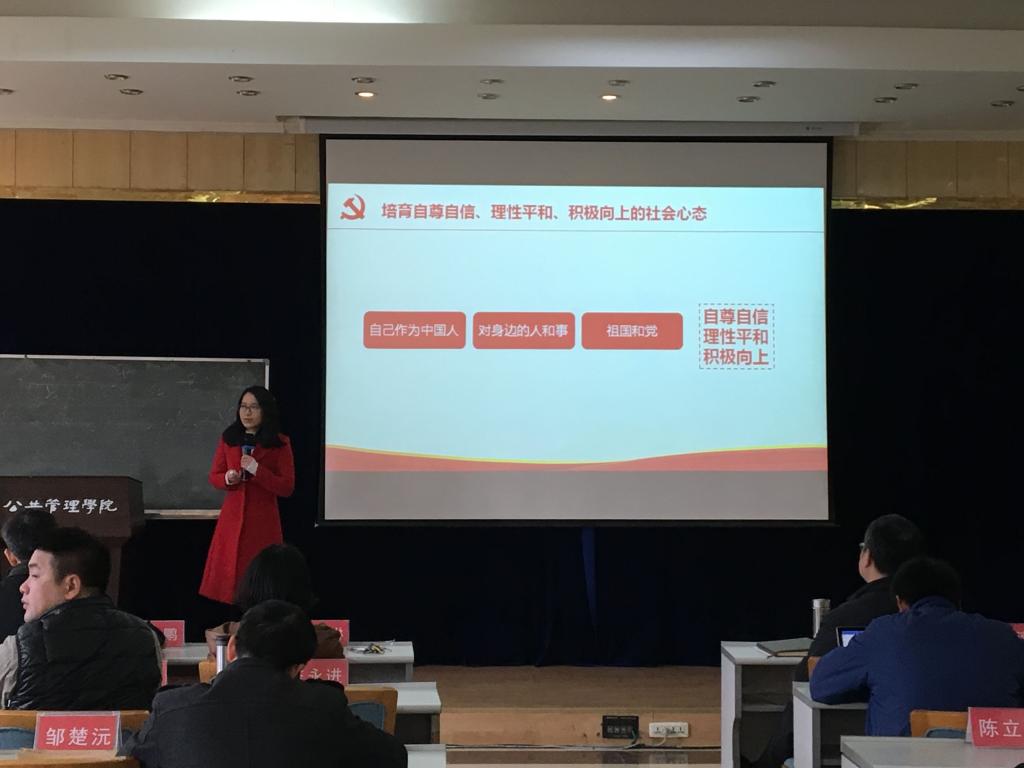 此次学习的主题是“加强社会心理服务体系建设,培育自尊自信、理性平和、积极向上的社会心态”。张金凤老师首先介绍了我国心理疾病患者人数众多,严重影响了人民的健康生命年和生活幸福感;然后强调了加强社会心理服务建设对打造共建共治共享的社会治理格局的重要性;最后阐述了由关注个人身心健康升华到培育自尊自信、理性平和、积极向上的社会心态。
