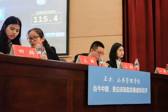 辩论队和经济与工商管理学院辩论队携手进入决赛。决赛的辩题为“当今中国,更应该鼓励发展虚拟经济还是实体经济”。公管学院辩论队持正方,认为更应该鼓励发展虚拟经济,经管学院辩论队持反方,主张当今中国更应该鼓励发展实体经济,双方就该辩题展开了激烈辩论。