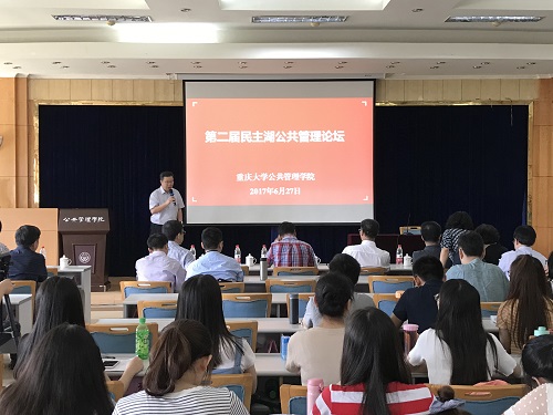 坚持办好做强“民主湖公共管理论坛”的衷心祝愿。然后,与会专家围绕“公共管理”这一主题先后上台和现场师生进行分享、畅所欲言。