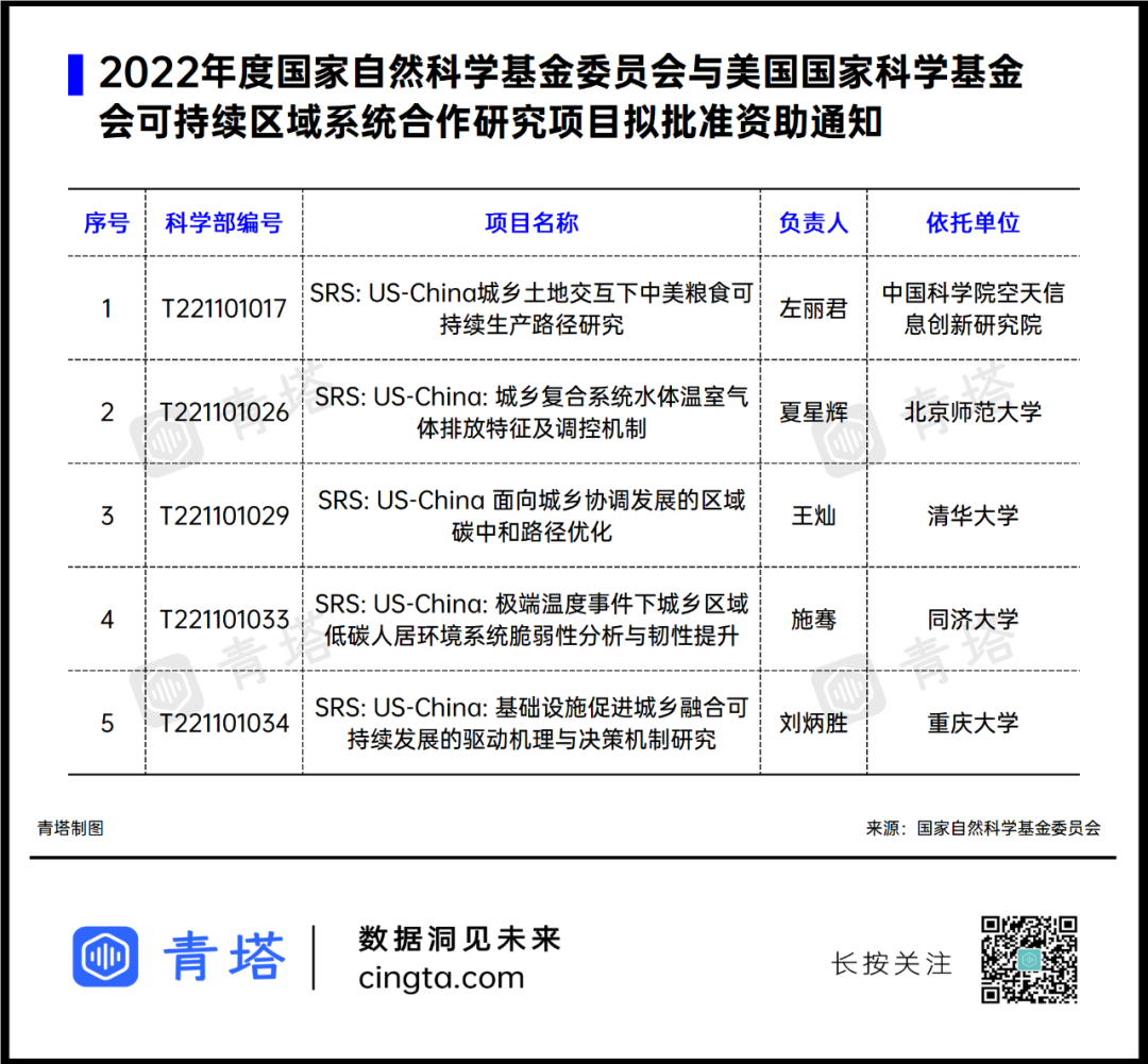 根据国家自然科学基金委员会与美国国家科学基金会(NSF)达成的共识,双方于2022年共同资助中美两国科学家在可持续区域系统领域开展合作研究项目。