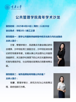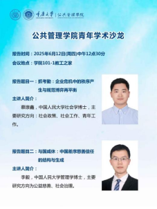 行政管理系、公共经济系、公共人力与社会保障系和土地资源与城市发展管理系联合举办系列学术沙龙分享,于2025年4月24日至7月3日成功举办四场精品青年学术沙龙,由学院副院长王辉教授主持。本系列学术沙龙有力促进了院系的深度学术交流与碰撞,提升了学院的科研活力与协同创新潜力。沙龙聚焦数字政务、应急管理、企业管理、慈善信任、气候适应、城市韧性等前沿热点议题,为公共管理领域的前沿发展和政策制定提供了重要参考。