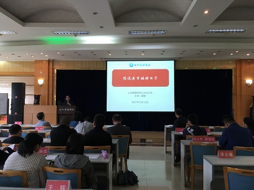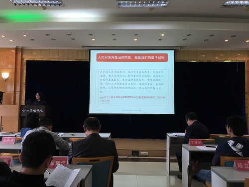 2017年10月12日下午3点半,公管学院党委组织全体教师进行专题学习,深入学习《习近平总书记系列重要讲话读本(2016版)》第十二章“让百姓过上好日子”。本次学习由学院党委书记兼常务副院长张邦辉主持,由经济系谭娅老师主讲。