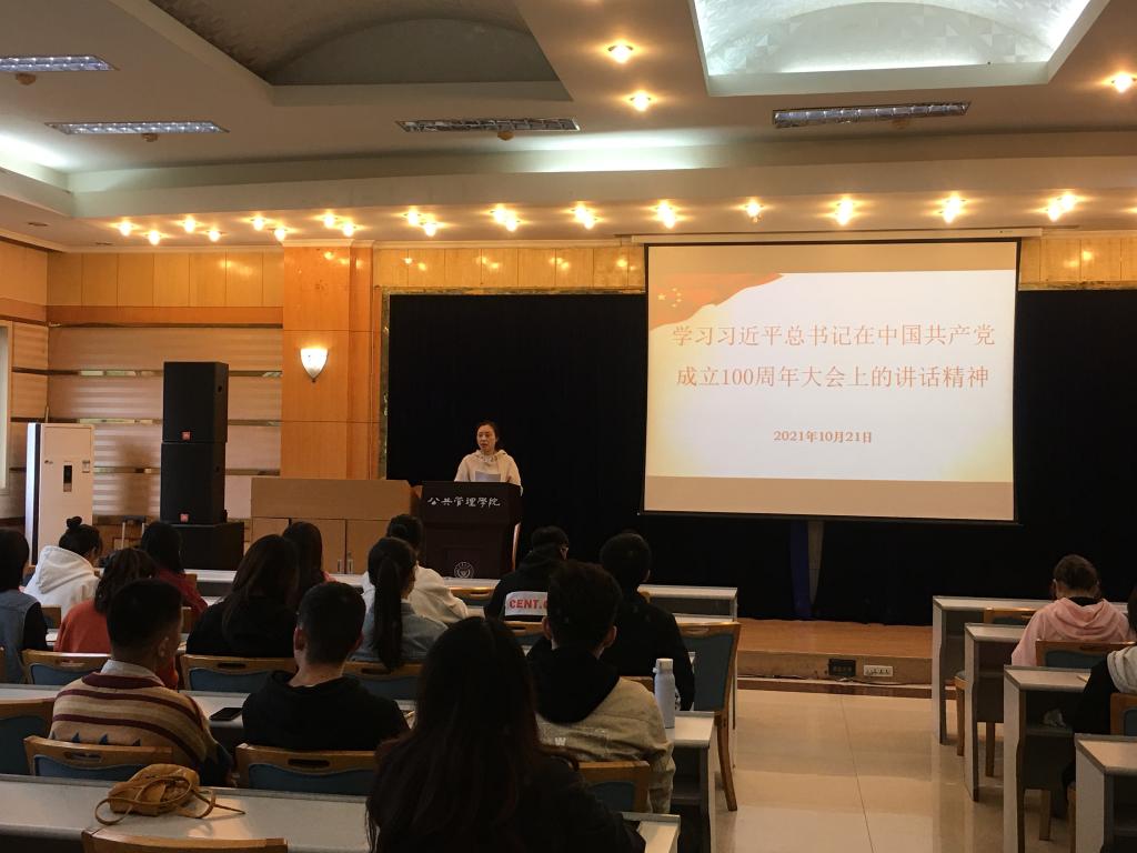 2021年10月21日下午,学院研究生六支部书记何薇以“学习习近平总书记在中国共产党成立100周年大会上的讲话精神”为题,为电影天堂 2021级研究生全体党员讲专题党课。
