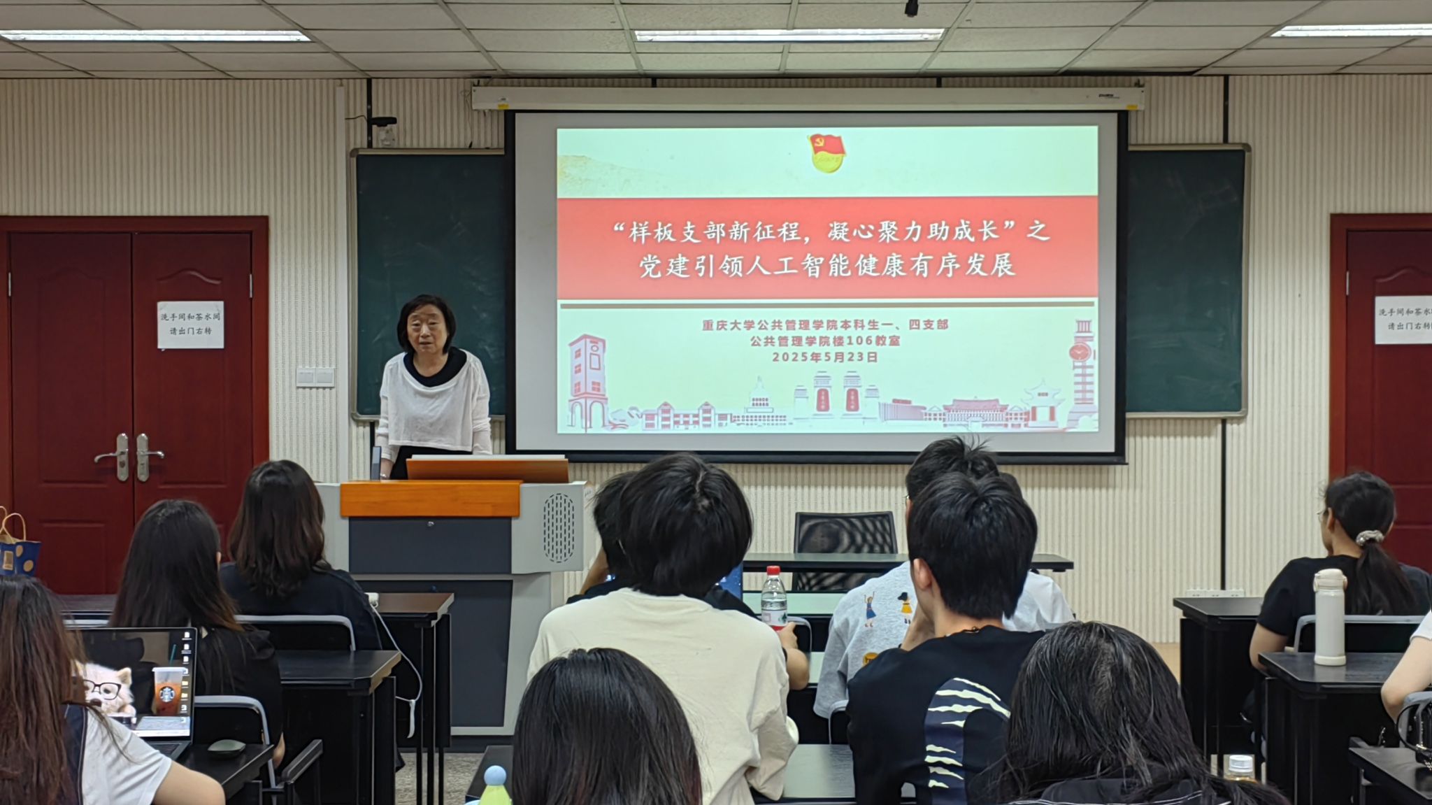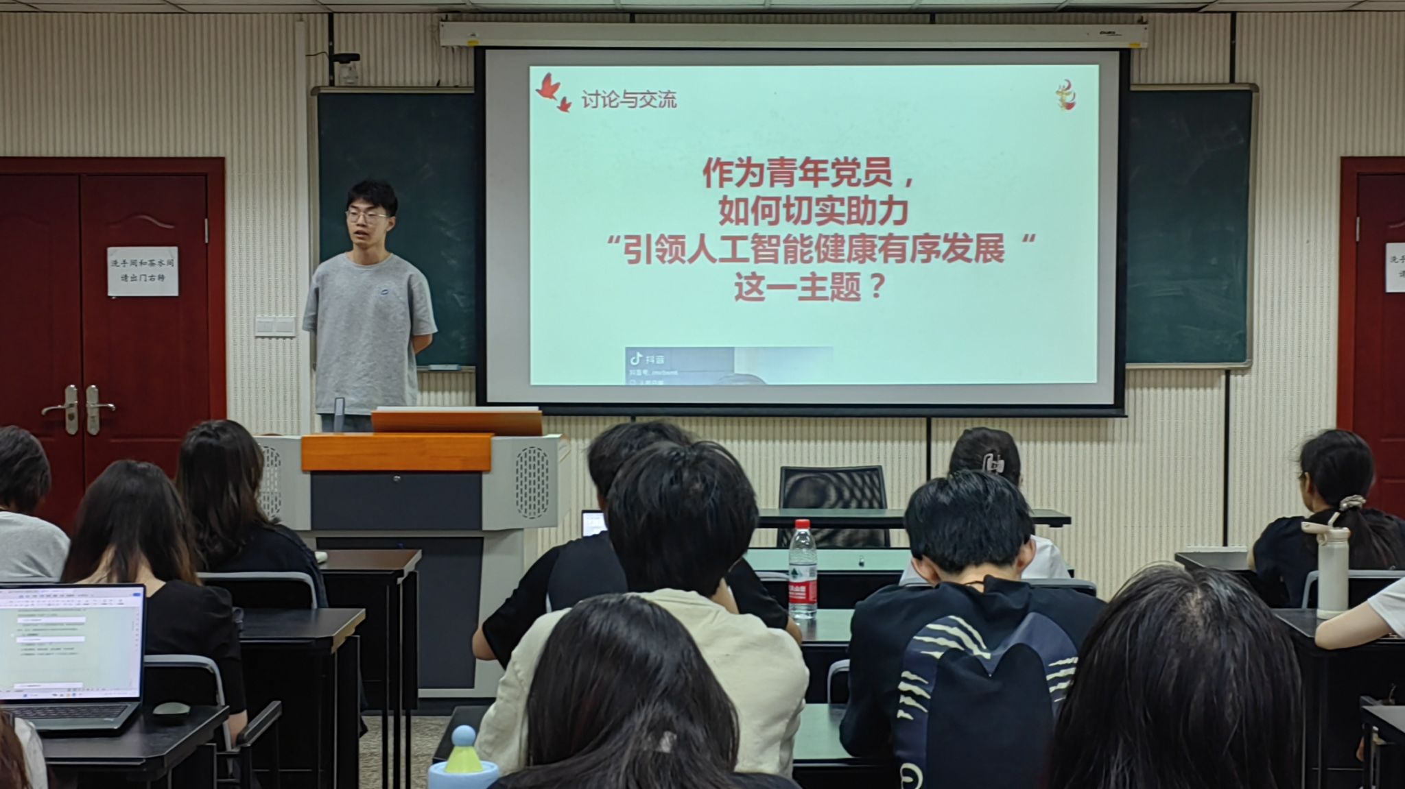 本科生一、四支部在学院楼106教室举行“样板支部新征程,凝心聚力助成长”之党建引领人工智能有序发展主题党课活动。本次活动深入学习贯彻习近平总书记关于人工智能发展的重要指示精神,结合党的建设工作领导小组会议与教育部党组会议的最新要求,探讨人工智能技术发展与监管的平衡路径,由本科生一支部书记王丽娟组织,本科生四支部预备党员王焙琪主持,一、四支部的全体党员、预备党员都积极参与。