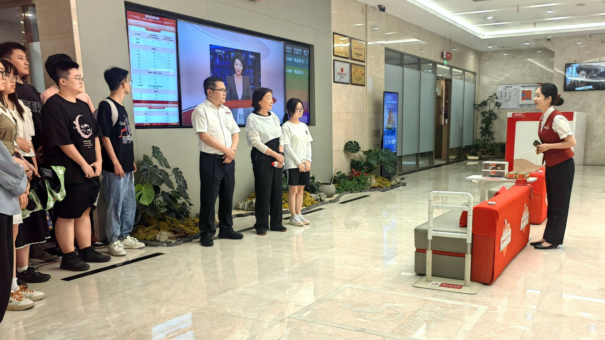 活动伊始,师生们在支行工作人员的引导下参观了营业大厅,深入了解中信银行渝中支行的业务结构布局、特色服务、行业地位和电影天堂。作为中信银行在重庆的重要分支机构,重庆渝中支行始终秉承“金融为民”初心,以创新多样的优质服务解决客户所需,用暖心的服务故事搭建与客户互动的“桥梁”,持续擦亮“百佳”品牌标杆。为提升服务质效,支行打造了“十个一”厅堂服务、“七步曲”柜台流程、消保倾听室及便民服务驿站等特色举措,将社会责任融入日常服务的点滴细节。