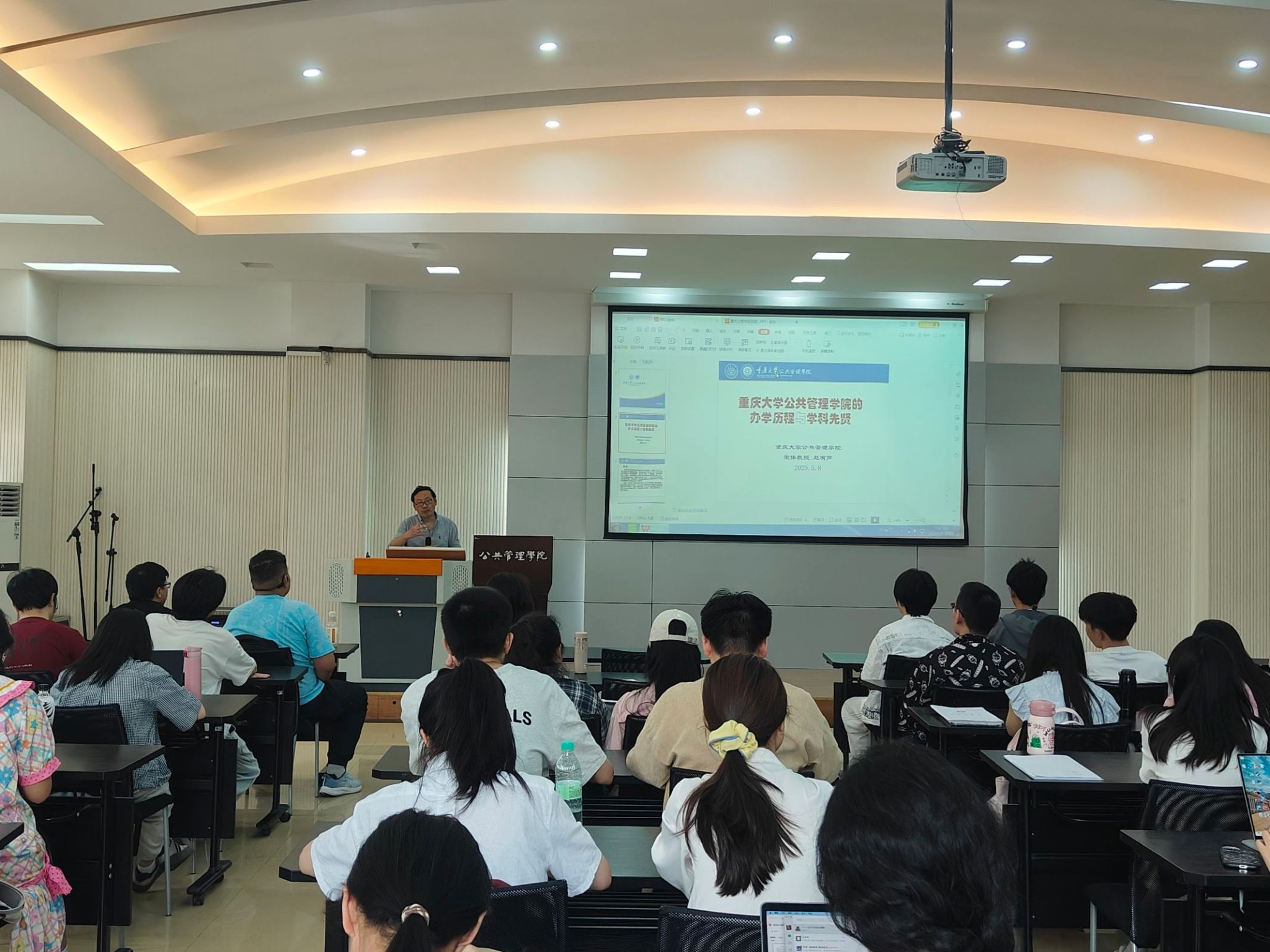 为传承学院历史,弘扬科学文化,彰显“五老”关爱下一代精神,强化思想引领,2025年5月8日15时,学院本科生一、四支部于学院楼102教室举办“样板支部新征程 凝心聚力助成长”之公管学院办学历程与学科先贤“五老”讲座。本次活动由一支部书记王丽娟组织展开,邀请到公管学院退休老教授赵有声主讲,一四支部党员及2022级全体团员以及入党积极分子积极参加。