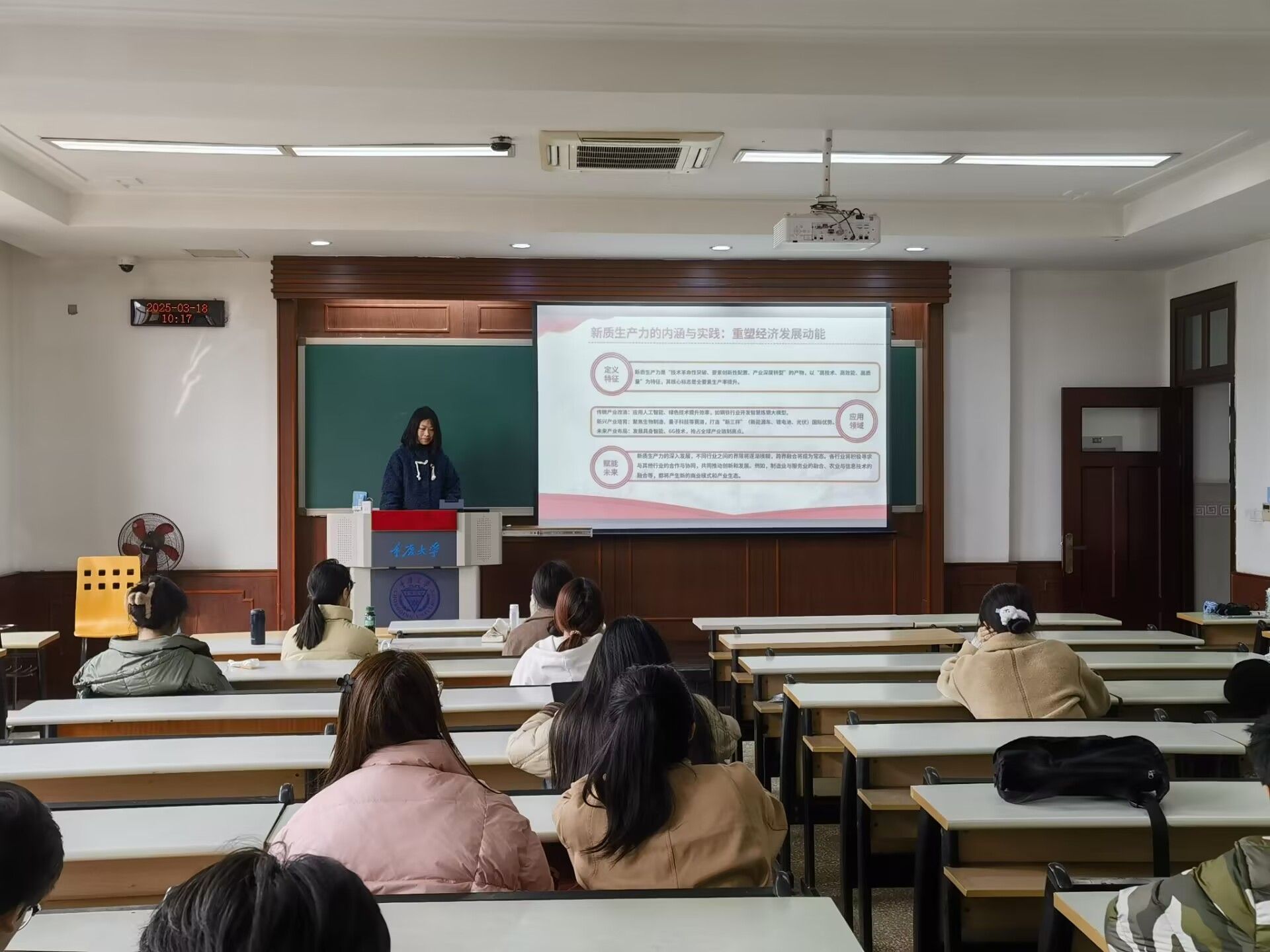 2022级经济学2班团支部在第五教学楼开展了“科技引领青年路·学子同绘复兴图”主题团日活动。本次活动共包含学习民主法治建设、推动新质生产力发展以及同学讨论发言共三个部分。