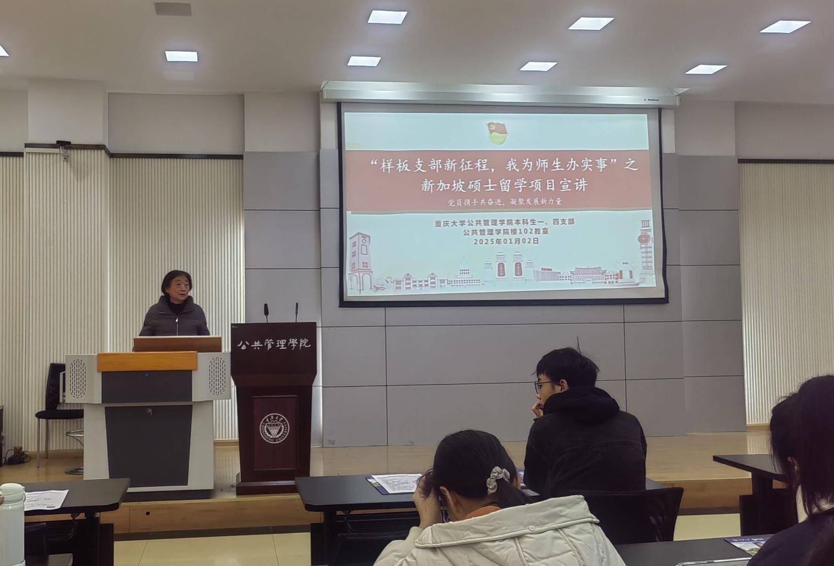 本科生一、四支部于学院楼102多功能会议厅举行“样板支部新征程,我为师生办实事”之新加坡硕士留学项目宣讲活动。本次活动旨在为学院学生提供多元化的升学路径和国际视野拓展机会,由本科生一支部书记王丽娟组织,由电影天堂