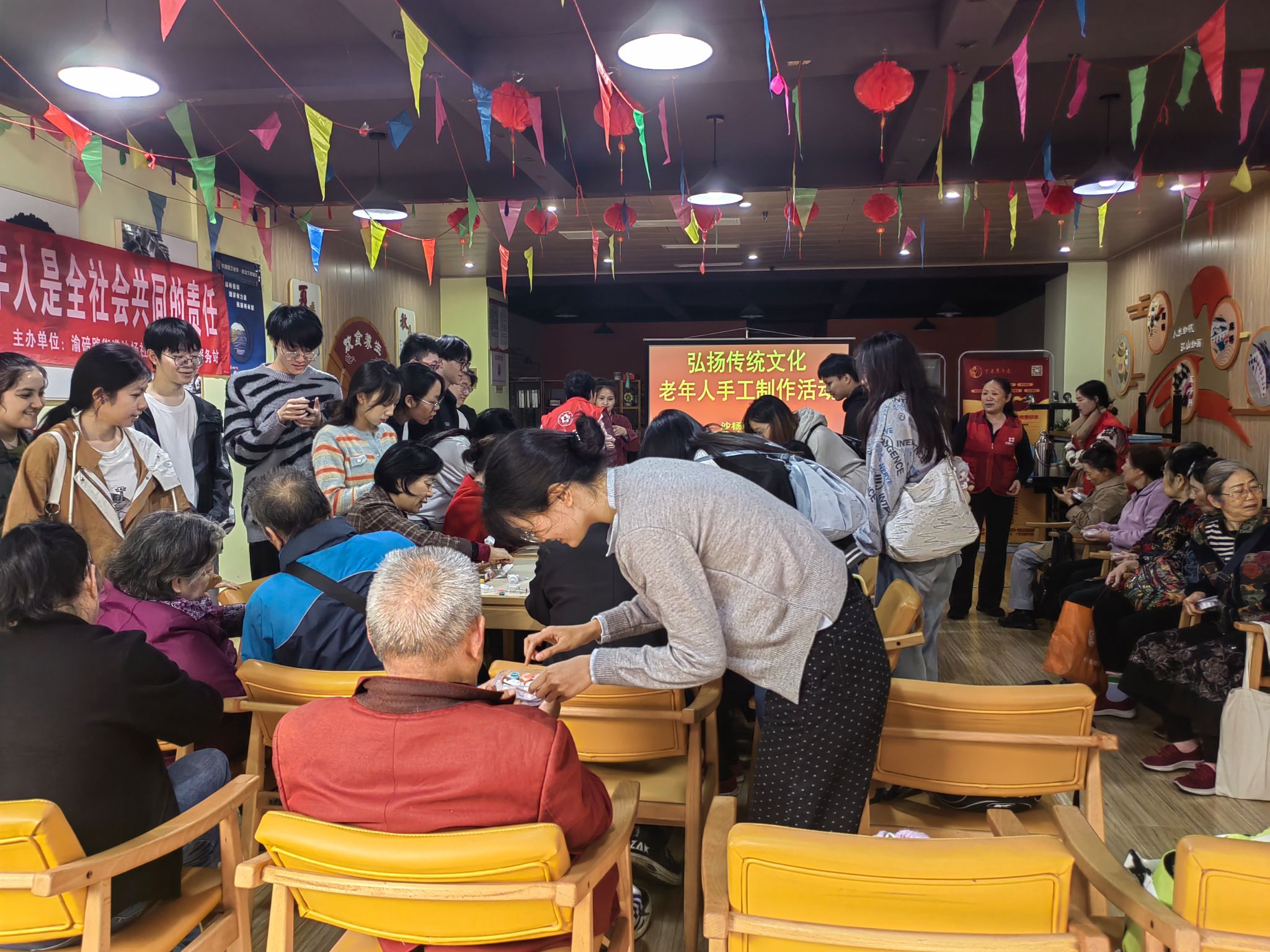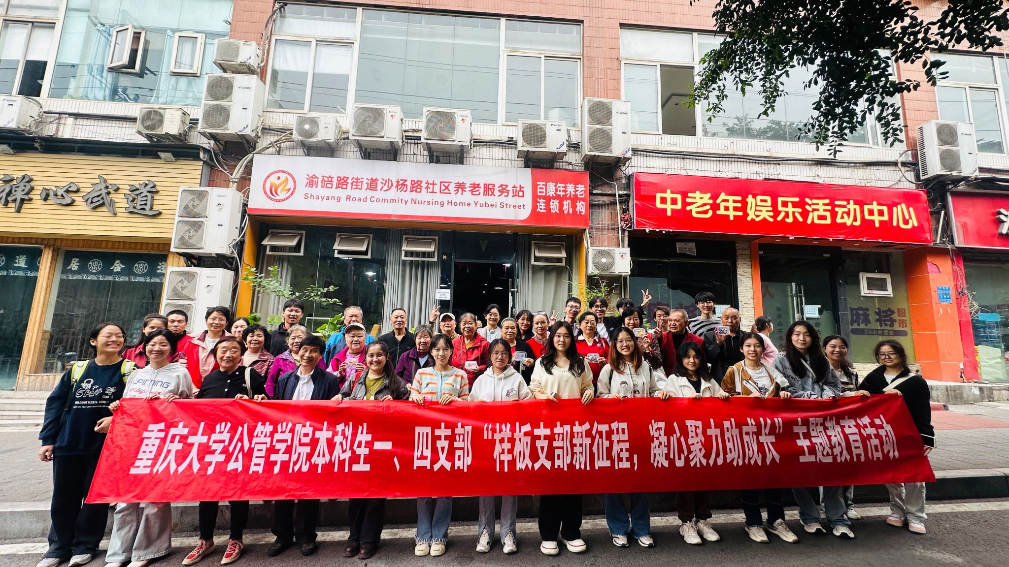 本科生一、四支部共同开展“样板支部新征程,凝心聚力助成长”主题教育活动,该活动在重庆市沙坪坝区百康年养老连锁机构渝碚路街道沙杨路社区养老服务站顺利开展。