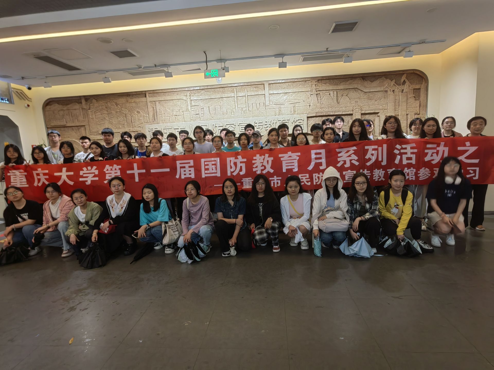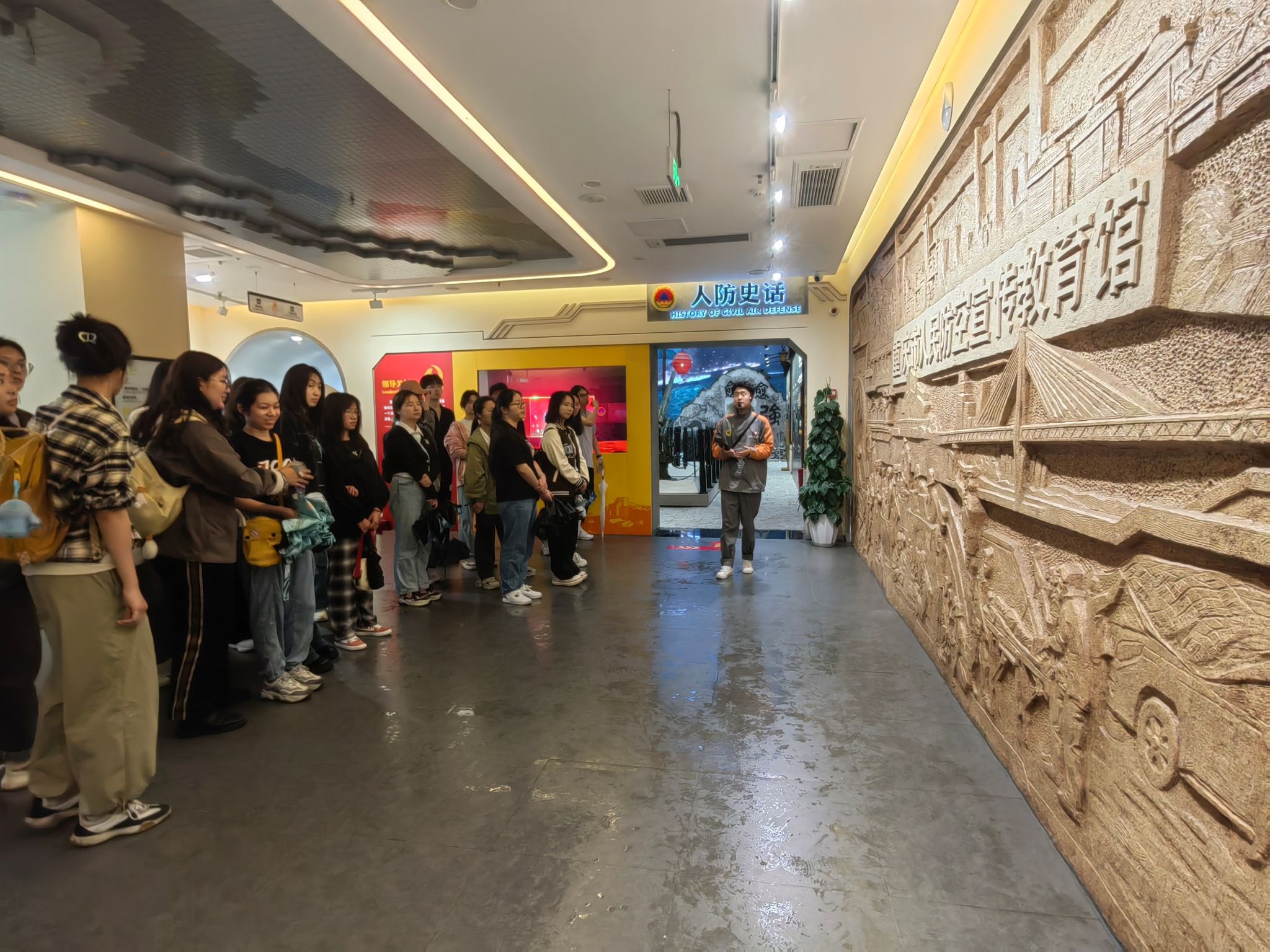 2024年4月20日下午13:30分,参与活动的师生乘坐校车前往重庆市人民防空宣传教育馆进行参观学习。重庆市人民防空宣传教育馆坐落于重庆市渝中区虎头岩公园,由一个地上人防科普主展区和军事瞭望台、地下军事要塞展示区组成,是重庆中心城区最大的人民防空宣教馆。