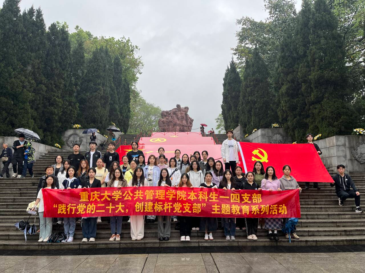 本科生一、四支部全体党员、入党积极分子积极参与,准时到场。活动在一支部书记王丽娟同志和四支部书记袁凤同志的主持下顺利开展。本次活动分为参观红岩魂陈列馆、烈士墓前肃立默哀并宣誓、祭扫烈士墓三个部分。