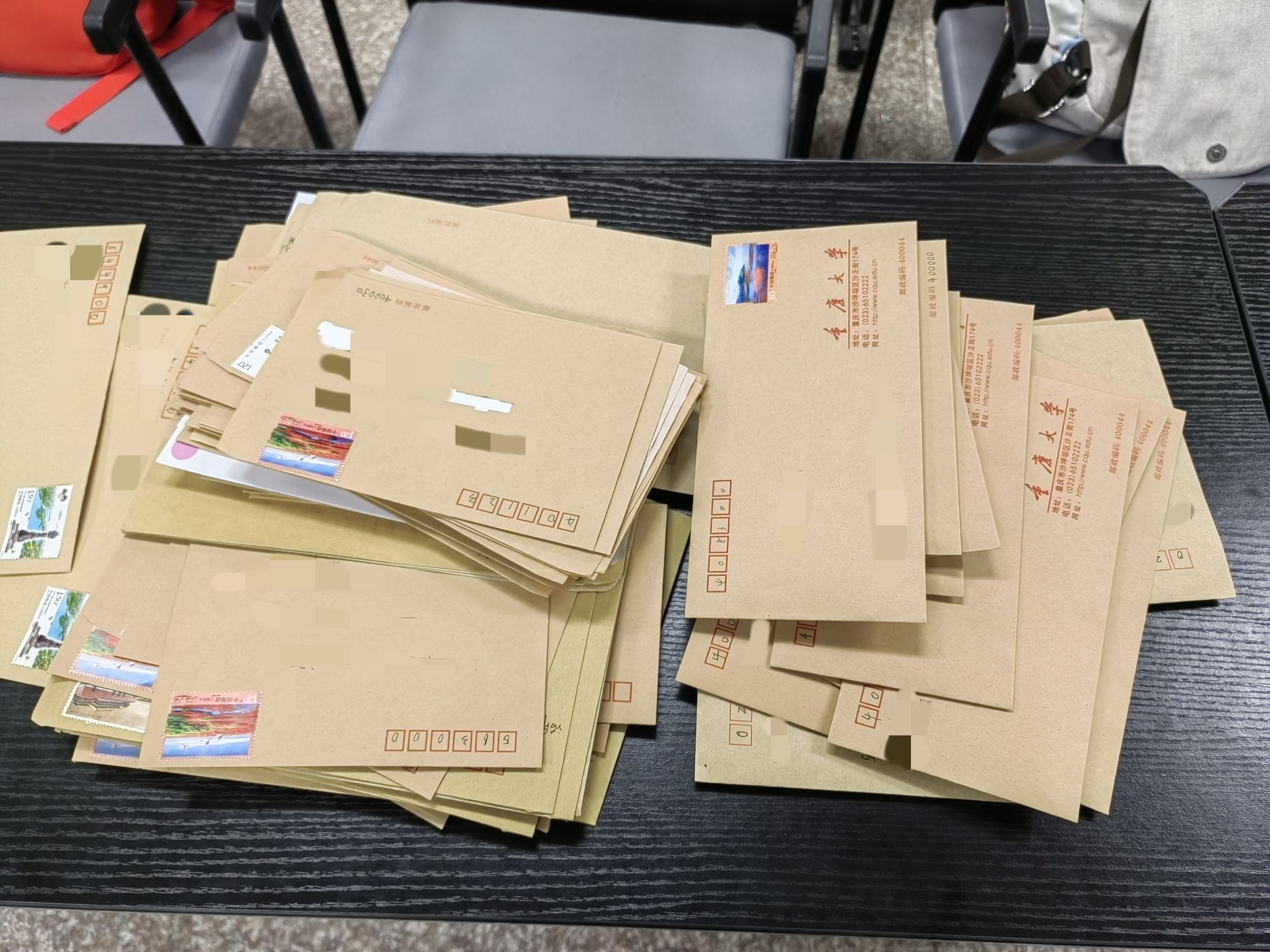放眼望去,一张张精美的邮票,一个个端正的字迹,即将跨越万水千山,为广大家长送去孩子们在校期间所学所获的证明。信笺一纸,其轻其薄,却承载了学生们孜孜不倦的学习精神,承载了学院管泽天下的育才之心。