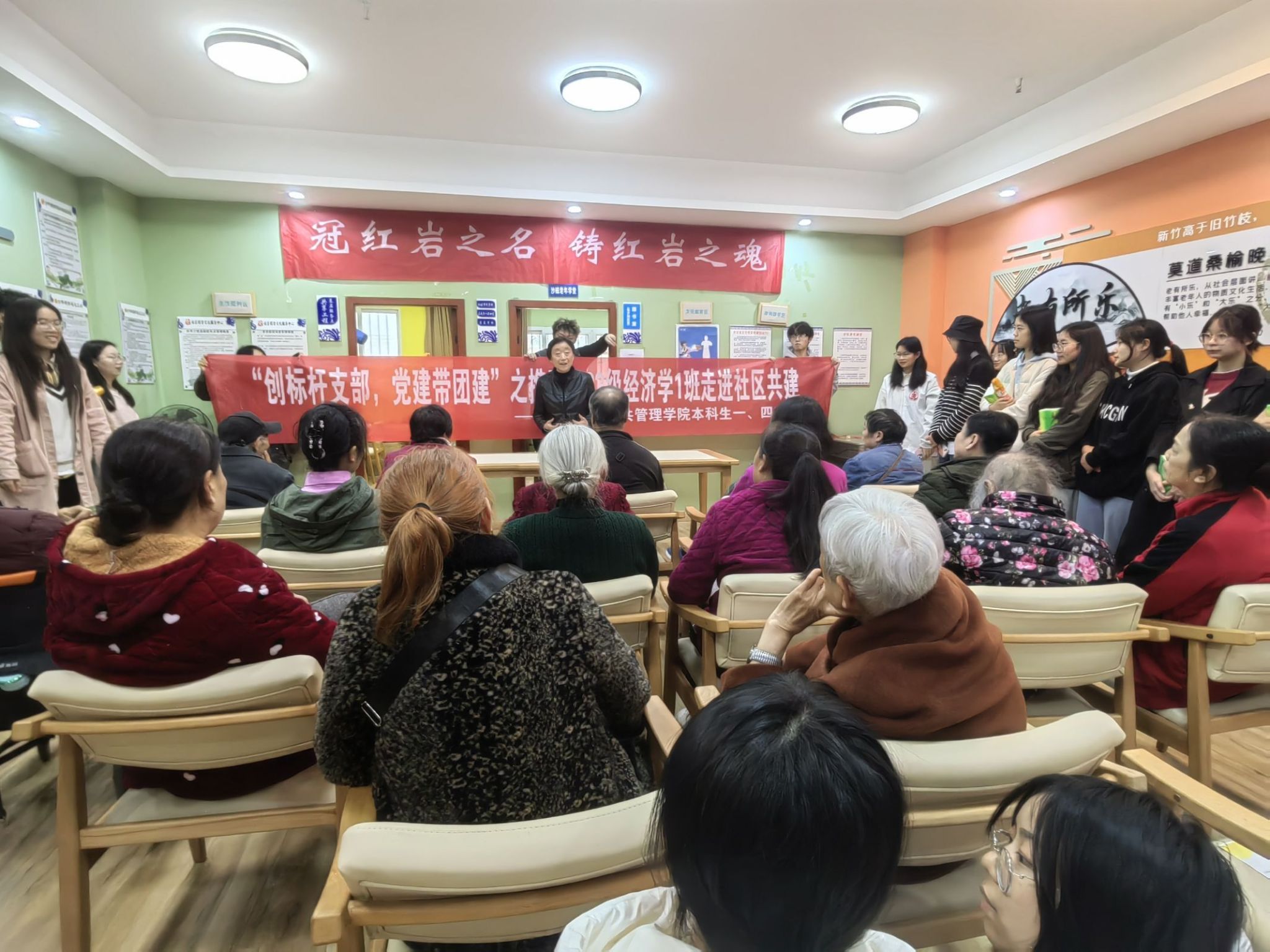 最后同志们与爷爷奶奶们合照留影,大家围绕在爷爷奶奶的周围,问寒问暖,带去亲人般的问候,拍照的同学喊三、二、一,大家看向镜头记录下了这次活动幸福的时刻。