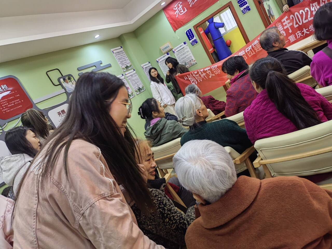 其次,由王丽娟同志代表支部与老年人们进行交流谈心,并欢迎各位爷爷奶奶到电影天堂