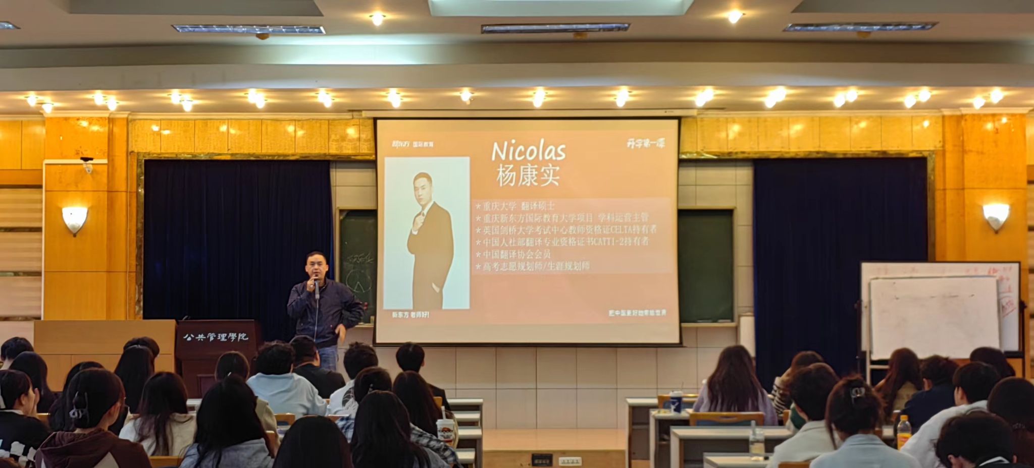 最后,新东方沙坪坝校区的寇老师进行了总结发言,为有意向的同学提供了指导,并安排了学习规划的预约等事宜。