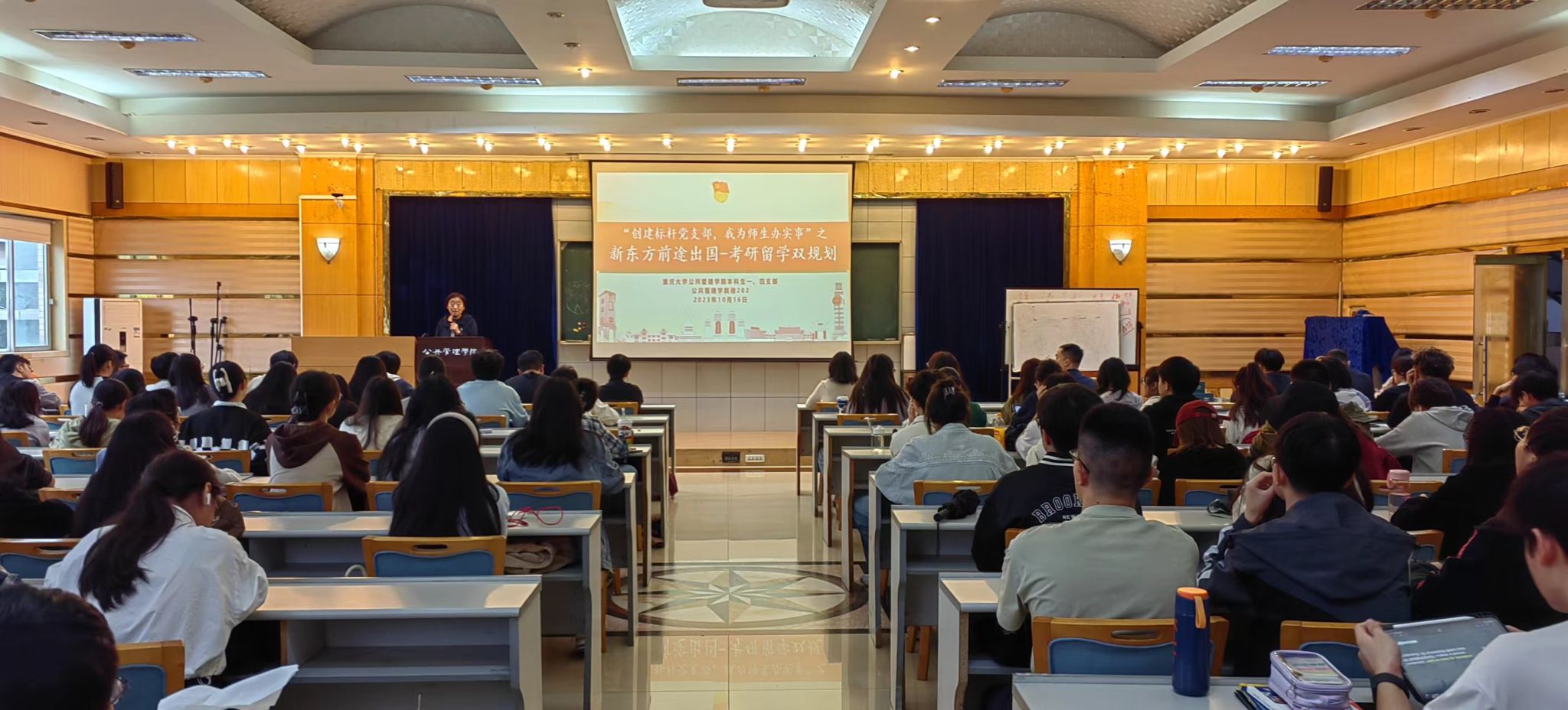2022级本科生一、四支部全体党员、入党积极分子、青年团员在学院202多功能会议厅参与了出国、保研、考研介绍答疑解惑交流活动。