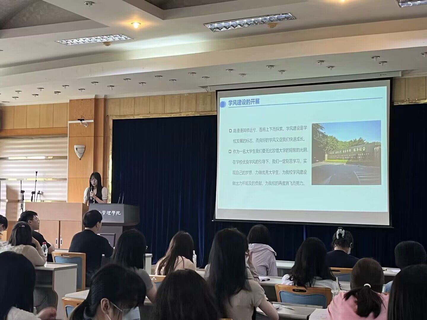 本次活动主要分为两个部分。首先,主持人向大家介绍了学风的涵义和意义。学风是指学生在学习过程中形成的一种学习态度和行为习惯。它不仅仅关乎个人的学习成绩,更关系到学生终身学习和发展的能力。培养良好的学风有助于学生形成正确的学习态度和价值观,提升学习效果,实现全面的个人发展。从更宏观的角度看,学风主要包括学习理论的动机、对待理论的态度、掌握理论的途径、运用理论的目的等几个方面。坚持理论联系实际,实事求是,就是马克思主义的学风。能不能坚持马克思主义学风,对于全党来说,是理论上和政治上是否成熟的一个重要标志,关系到党的兴衰和事业成败的重大政治问题。