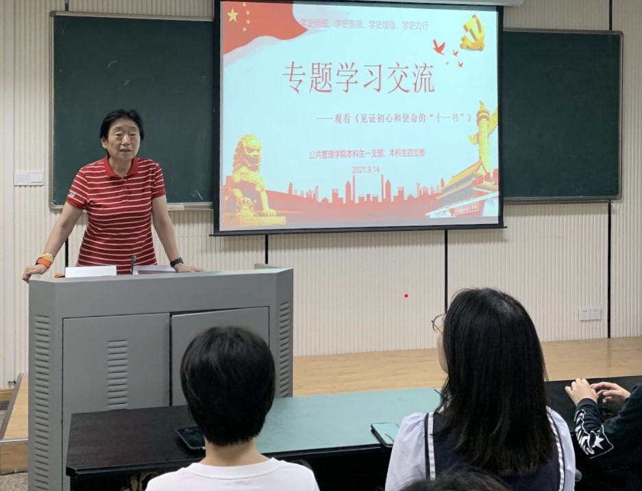 本科生一支部书记王丽娟同志发表讲话,总结了上学期的工作情况并简要介绍了支部的组织安排;第二部分为观看微纪录片《见证初心和使命的“十一书”》。