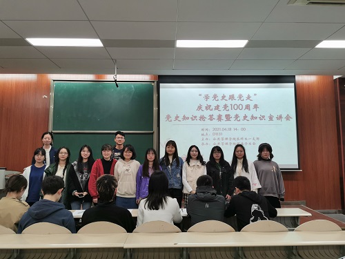 团委学生会承办的“学党史,跟党走”庆祝建党100周年党史知识竞赛暨党史知识宣讲会在D1131教室顺利举办。20级全体入党积极分子到场参与和观看,学办主任兼19级辅导员王丽娟到场观看。