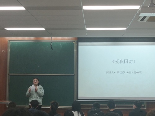 在本次演讲比赛中,同学们的表现可圈可点,其中不乏许多精彩的表述。例如:来自经济二班的樊佳瑞同学借助五分钟的三个故事向同学们介绍了国防离我们并不遥远,并引出观点“国防非儿戏,切莫太自信”;来自公管二班的郭佳良同学结合自己的家人的例子生动向同学们展示出国防之不易;来自公管三班的于茜同学则借纪录片《侣行》强调了对今时的珍惜……参赛同学们的观点与表达皆不相同,但都展现出各自对国防的思考和对祖国最诚挚的爱。