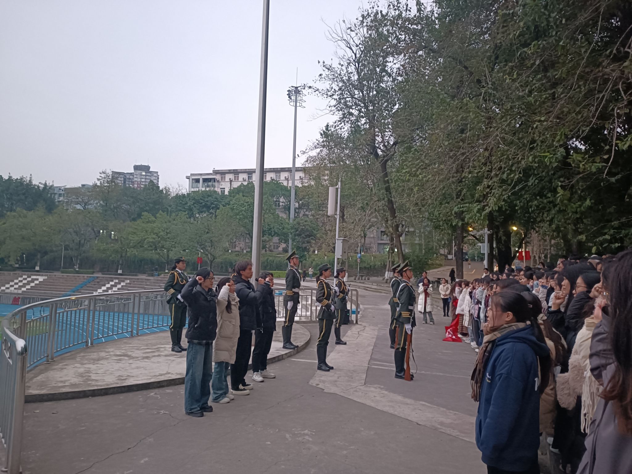 升旗仪式暨党建带团建主题活动,学院团委书记兼本科2023级辅导员徐柳老师带领70名公管学子到场参加。