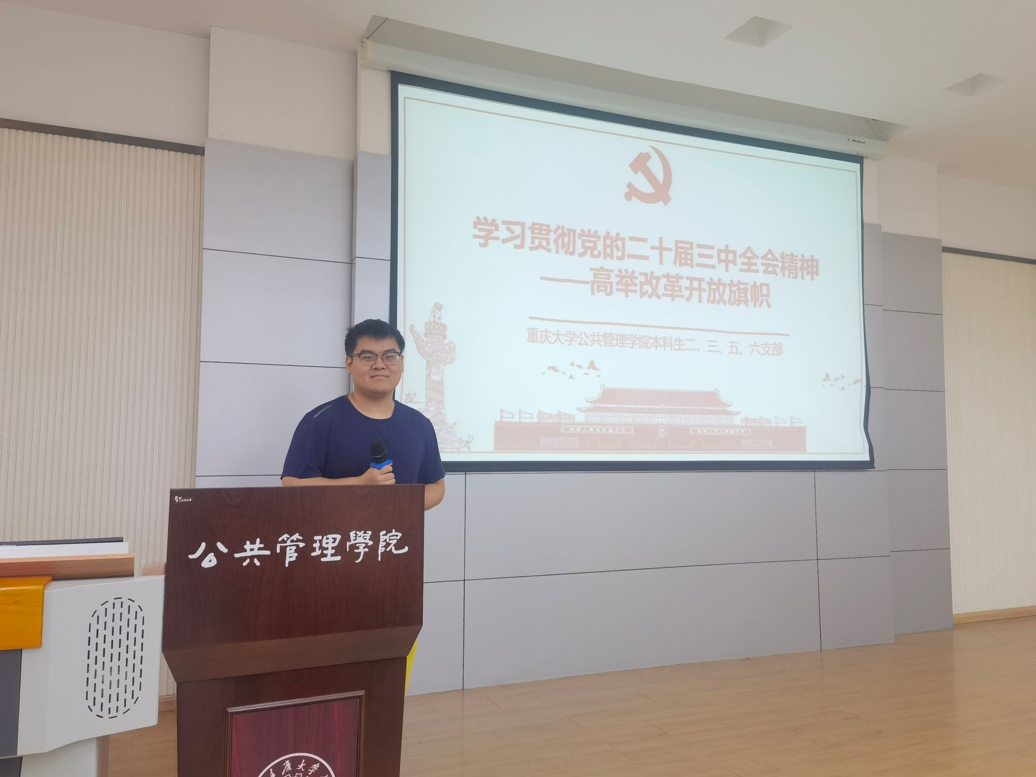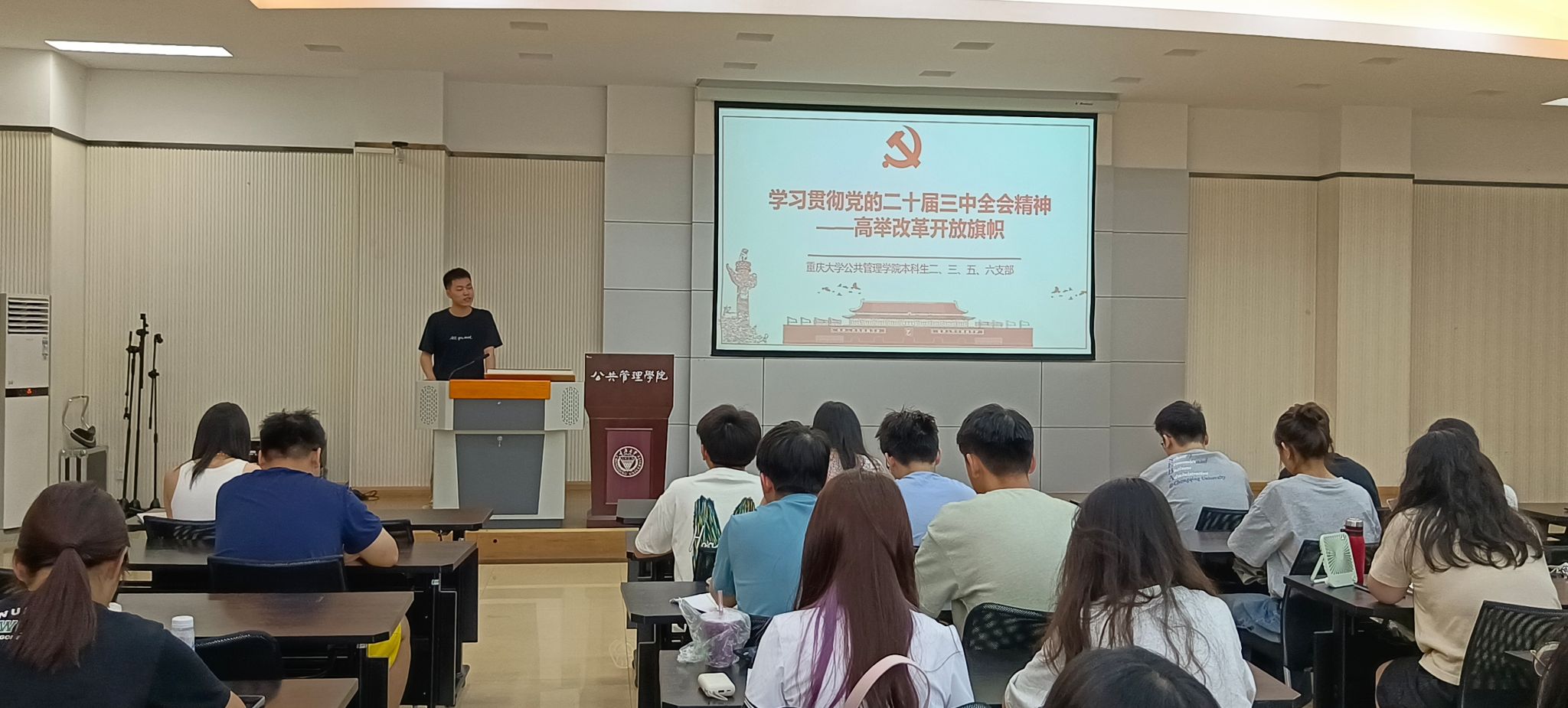 本科生二、三、五、六党支部联合开展了“学习贯彻党的二十届三中全会精神——高举改革开放旗帜”主题党日活动,本科2021级全体学生党员、2023级全体入党积极分子都参与了学习。