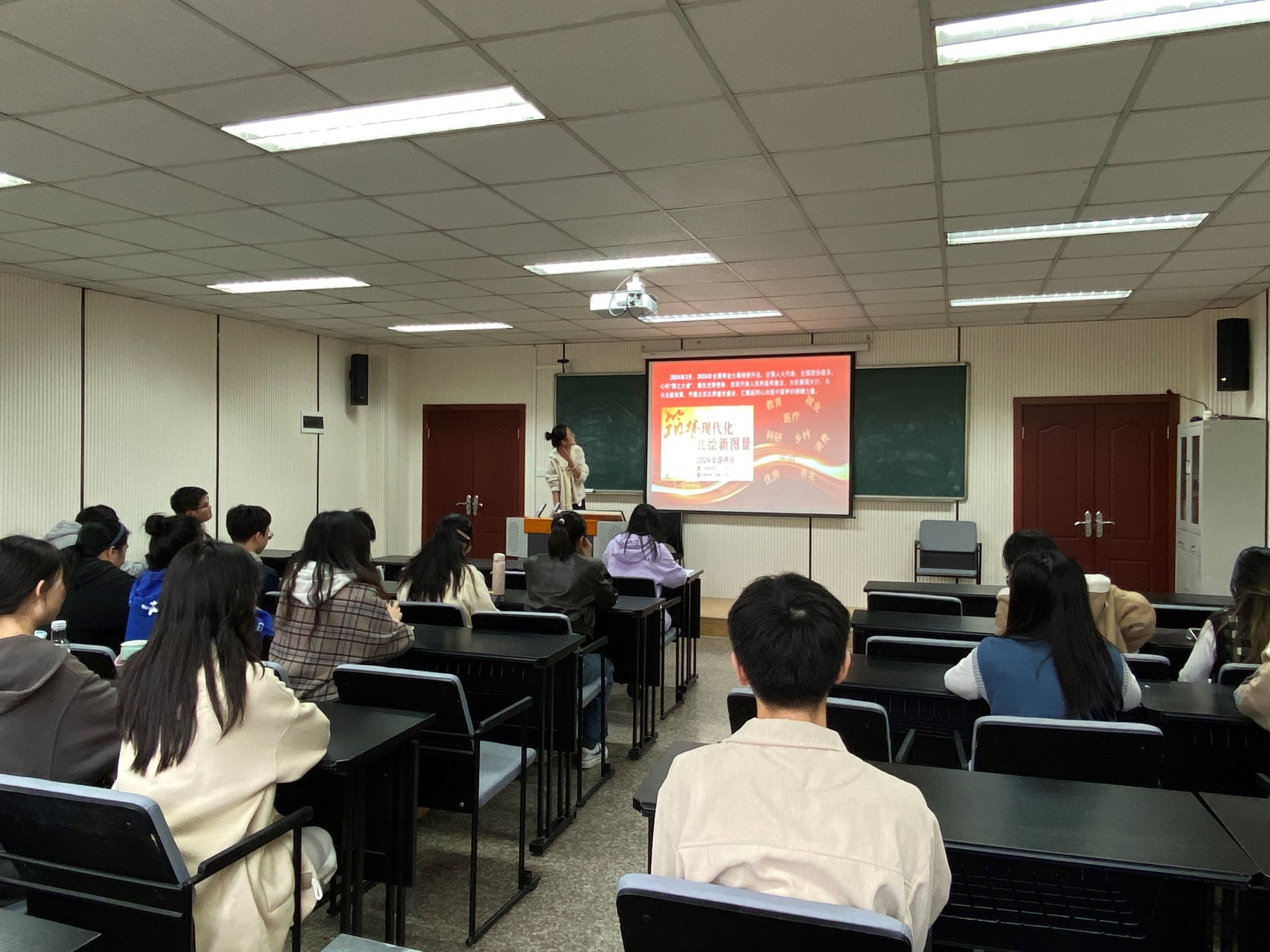 本科生二、五支部青年党员热切关注“两会”盛况,通过多种方式认真聆听,及时了解“两会”动态和精神,并结合自身学习认真贯彻落实“两会”精神,3月21日在学院楼106教室开展了“聚焦‘两会’,公管青年有话说”主题党日活动,集中学习和热议“两会”精神。会议由本科生二支部书记徐柳主持,本科生二、五支部全体党员积极参会。