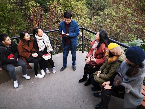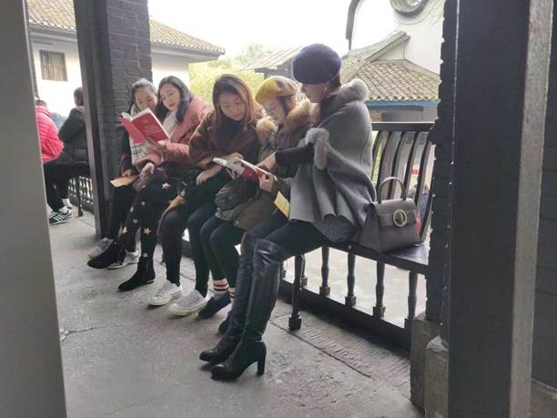 下午一时许,支部全体党员一同来到了位于歌乐山麓的渣滓洞集中营旧址,满怀对革命先烈的敬重之情,在讲解员的介绍下回溯革命先烈的事迹。低矮阴暗的牢房、锈迹斑斑的刑具、陈列着的积满沉重岁月的照片与手迹让大家深刻感受到了江竹筠、许云峰等烈士为革命胜利遭受的痛苦与磨难。在参观间隙的休息时间,支部党员们拿出了红色读物,一同学习讨论。