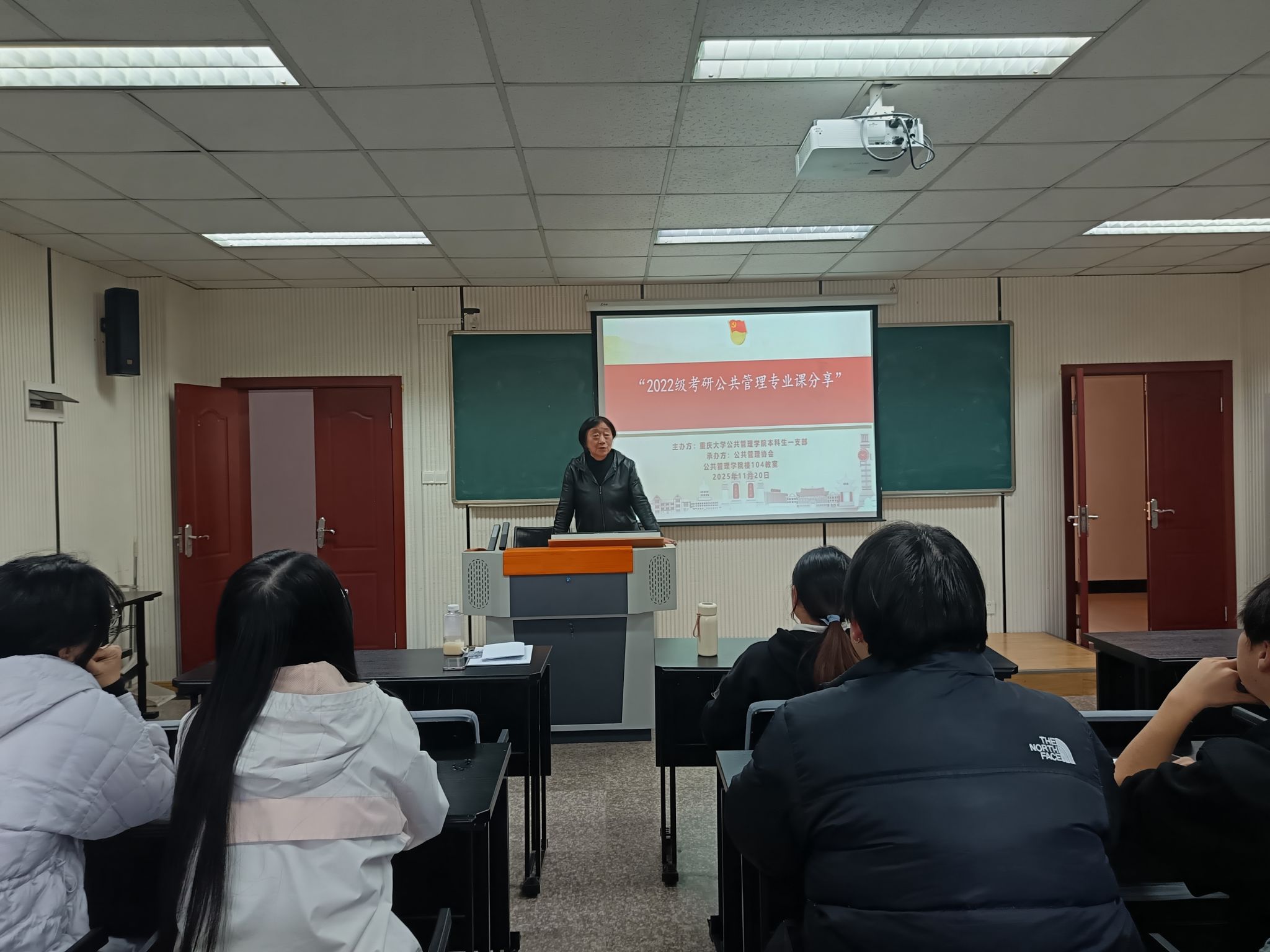 20251120日,由 电影天堂 本科生一支部主办、公共管理协会承办的“2022级考研公共管理专业课分享会”在 电影天堂 楼104教室举办。本次活动旨在践行:“凝心聚力助成长、党建引领办实事”的宗旨,为备考公共管理专业研究生的同学提供实用的学习经验与方法指导,助力同学们科学规划、高效备考,会议由本科生一支部书记、公共管理协会指导老师王丽娟主持,2025级公共管理专业四名经验分享硕士以及报考学生和公共管理协会的部分同学组成。