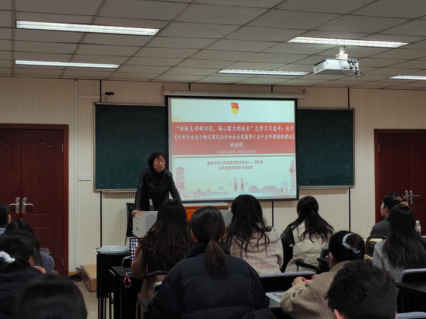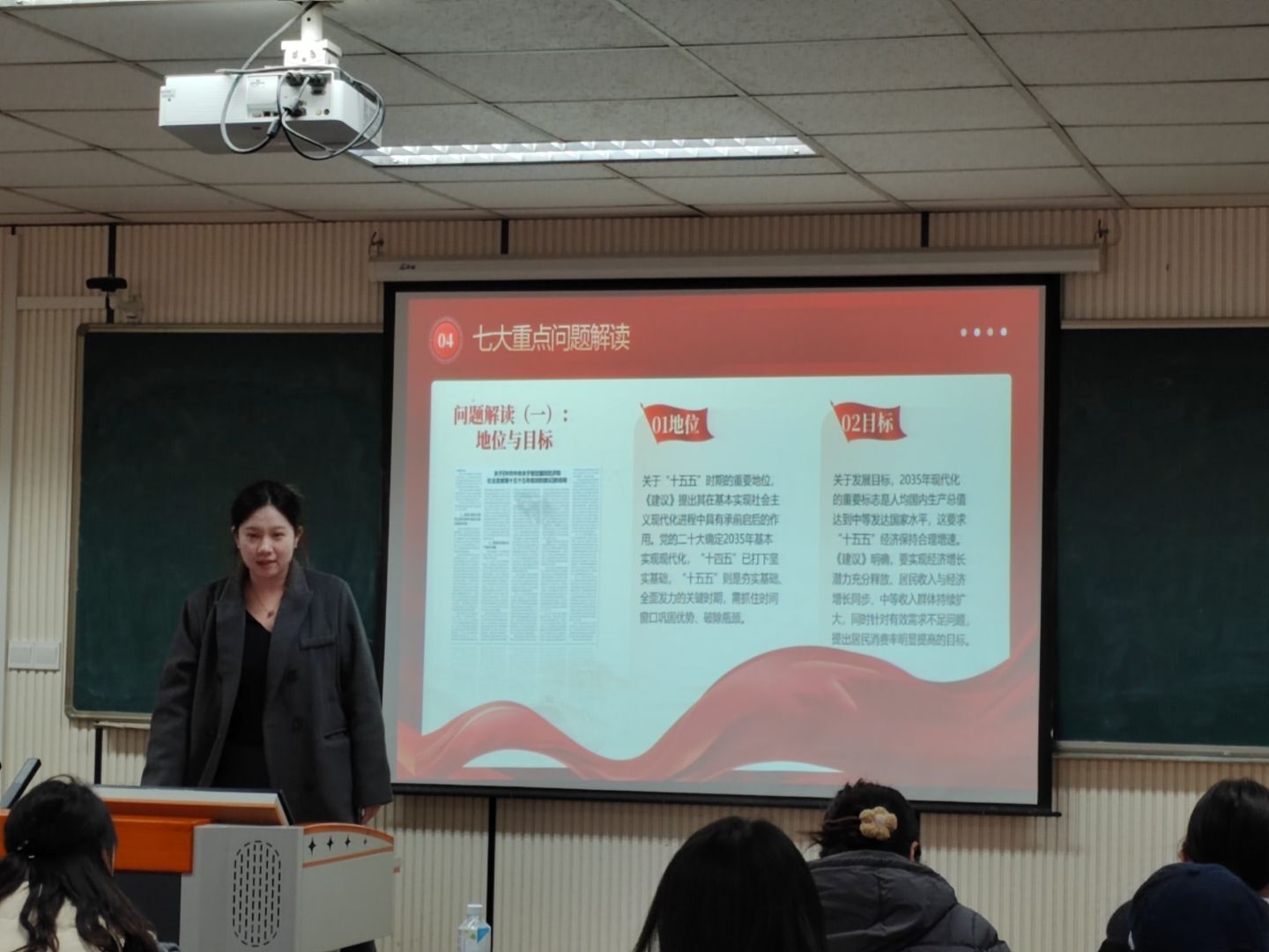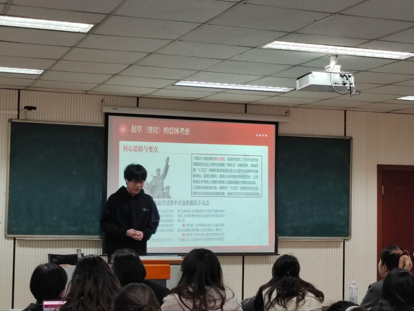 本科生一、四支部在学院楼104教室开展“样板支部新征程,凝心聚力助成长”系列活动之学习《中共中央关于制定国民经济和社会发展第十五个五年规划的建议》的说明主题党日活动。本次活动旨在引导支部党员深刻领会“十五五”规划建议的核心要义与实践要求,强化使命担当,凝聚起思想共识与行动自觉。活动由本科生一支部书记王丽娟主持,本科生一支部党员于思杰和四支部党员忻世蕊主讲,两支部全体党员积极参与。