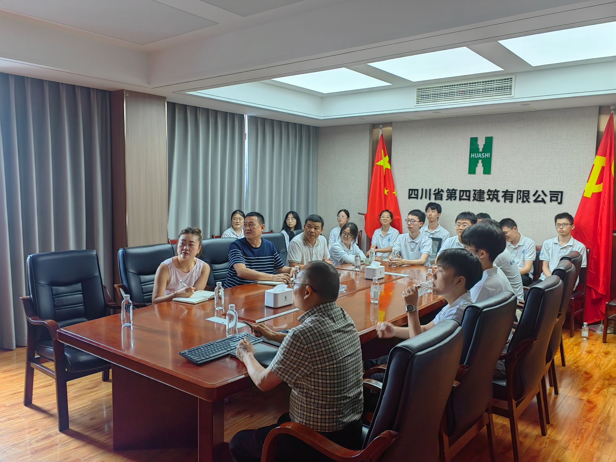 2025年7月19日上午9点,学院“双城助力实践行”三下乡实践团走进德阳华西四建,聚焦成渝双城经济圈基础设施建设协同发展,通过座谈交流、项目展厅调研的形式,深入探究建筑行业在双城建设中的引擎作用、人才引进与培养机制及对乡村振兴的基建支撑成效。实践团由学院本科生一、四支部的入党积极分子、党员组成。