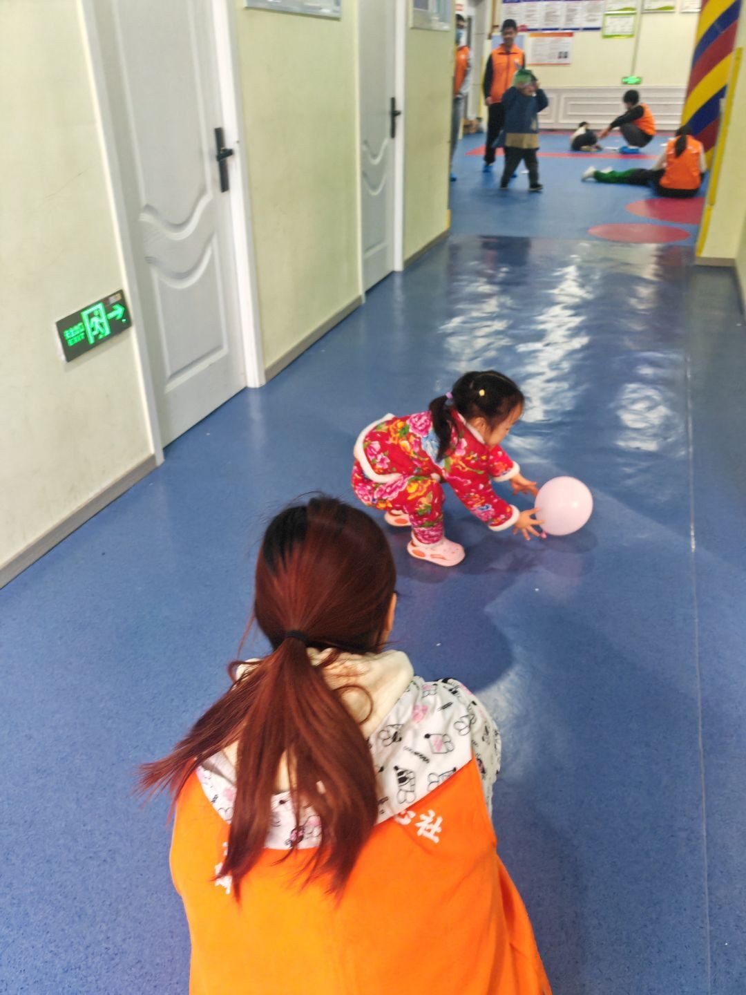 活动过程中,我们实行“两名志愿者对应一位小朋友”的配对模式,让每个孩子都能拥有专属的陪伴与照料。小朋友们的兴趣偏好各不相同:有的拿起画笔,将脑海里的奇思妙想化作笔下的斑斓画面;有的沉浸在积木搭建的乐趣中,拼搭出造型各异的作品,志愿者在旁时刻细心看护;还有的热衷于大堂的游乐设施,志愿者便始终耐心紧随其后,全力筑牢孩子们的安全防线。
