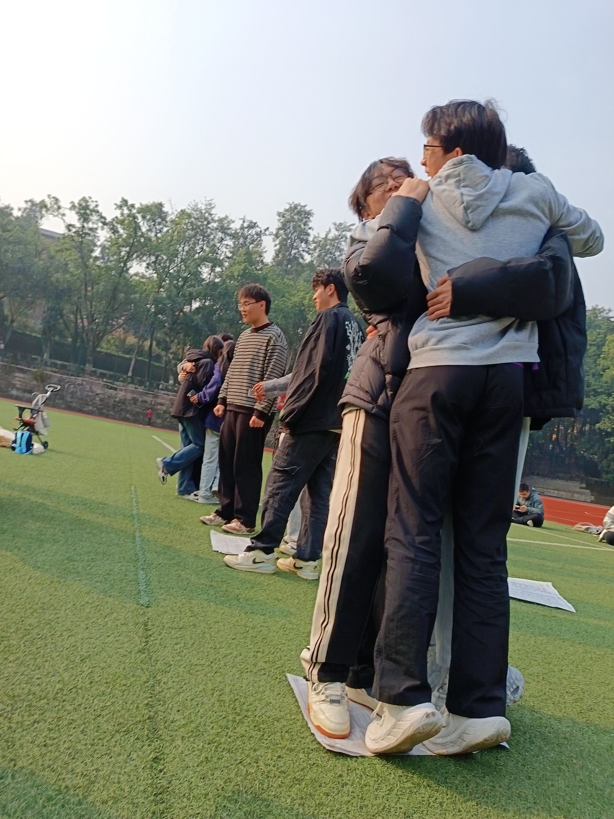 而“站报纸”环节则将气氛推向高潮,队员们通过猜拳对决,在不断对折的报纸上挑战平衡极限,现场欢声笑语不断。整个过程中,同学们全情投入,互相鼓励,展现出蓬勃的朝气与良好的团队精神。