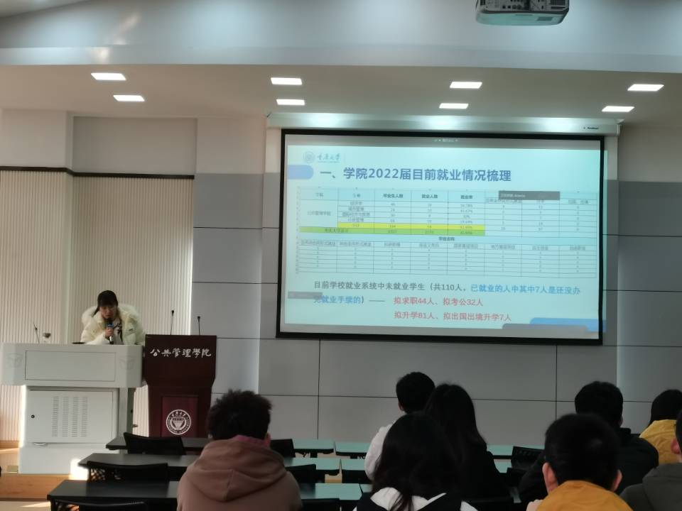 会上,徐老师对本院2022届本科生目前的就业情况和整体就业形势进行了梳理和分析,提醒和动员同学们利用好当前的春招小高峰,抓紧招聘和公考机会,同时鼓励同学们积极参加学校、学院组织的各类就业指导活动、主动学习相关求职技能,做好充分准备。