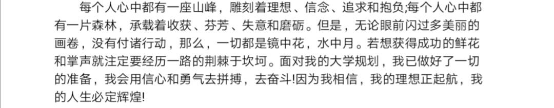 “凡事预则立,不预则废。”通过几个月的学习生活,19级的新生们对大学生活有了一定的了解,对未来的规划有了思考的方向。在此基础上,同学们剖析自我,确立目标,在大规划下再做小计划,像日本马拉松选手山田本一一样,将成功一点点分解,在一次又一次的累积下取得圆满的成功。“天行健,君子以自强不息。”作为新时代的青年,同学们应秉承学校“研究学术,造就人才,佑启乡邦,振导社会”的宗旨,做一名合格的“重大人”、“公管人”。就像一位同学在她的计划书中写道:“我对自己的期许是能够成为一个学术型人才,能够为这个社会不起眼的存在发声,能够感知社会的美好,观察社会的漏洞,在实现个人理想的的同时为社会做到哪怕是微小的改变。”