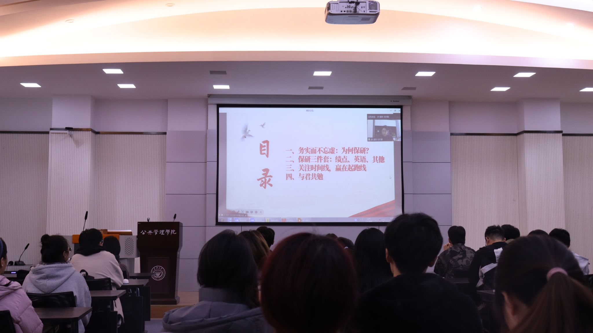 而来自行政管理专业人力资源与保障方向的杨洋学姐则为想要跨保的同学们分享了自己跨保上岸厦门大学社会学专业的独特历程。最后来自城市管理专业的王鑫宇学长则从自身的科研经历详细介绍了保研路上应做的科研准备。