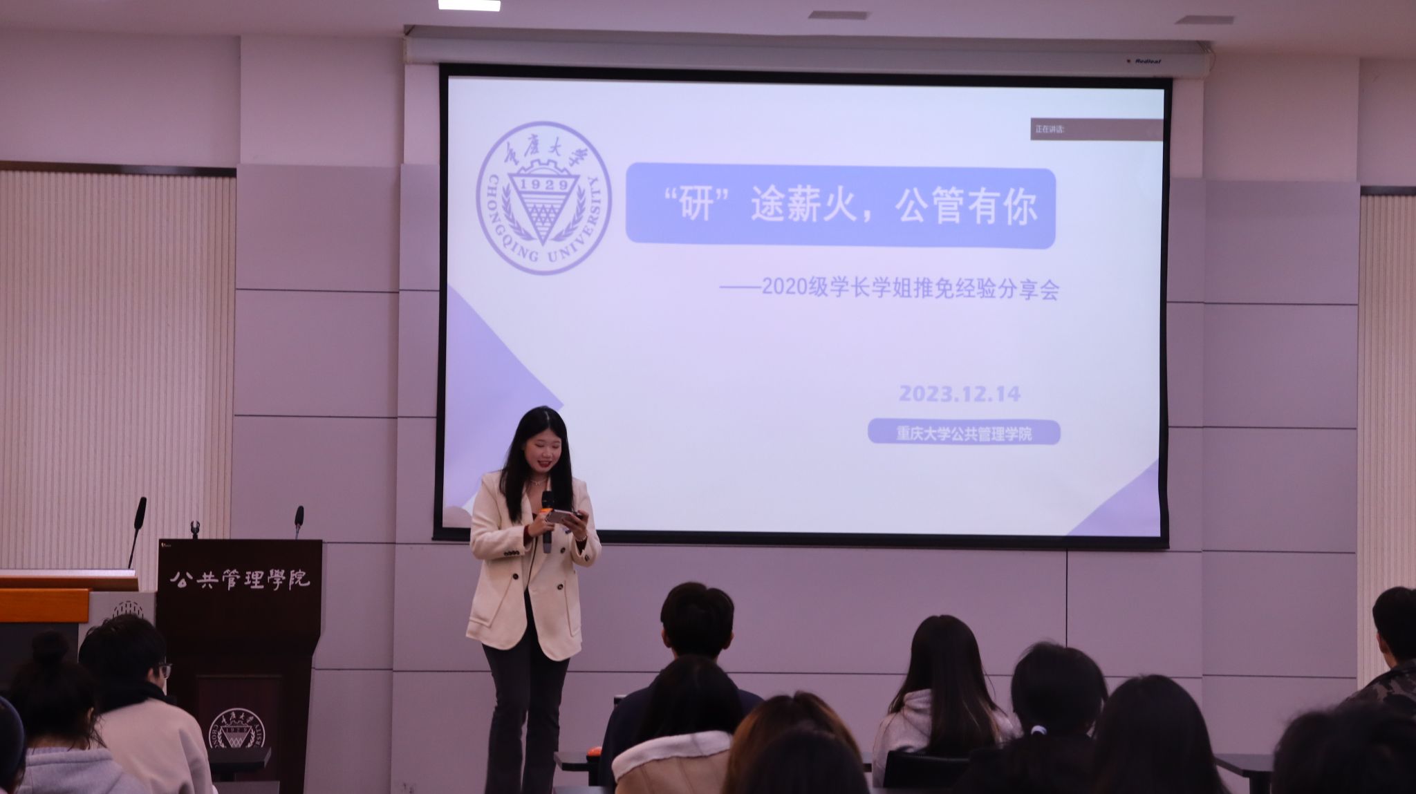 分享会伊始,徐柳老师向同学们强调了本次保研分享会的意义与关键性,并代表学弟学妹们向六位学长学姐们表示感谢。