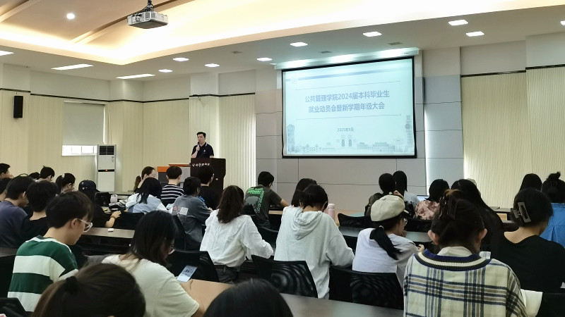 2024届本科毕业生就业动员会暨新学期年级大会在学院102多功能厅召开。学院全体2024届本科毕业生参加会议,2020级辅导员包晗主持会议。