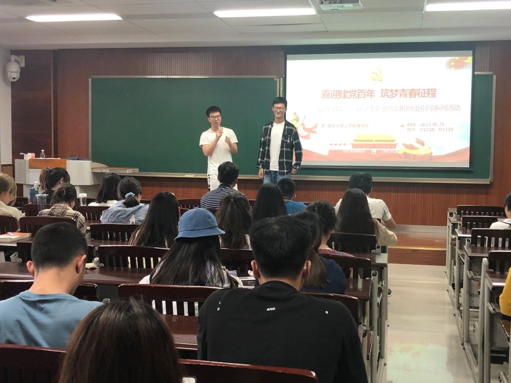 2022届学生的专业特点和主要就业方向,分为三个主要专题分别进行。公管学院团委书记兼2018级本科生辅导员徐柳老师以及2018级全体本科学生参与了本次活动。