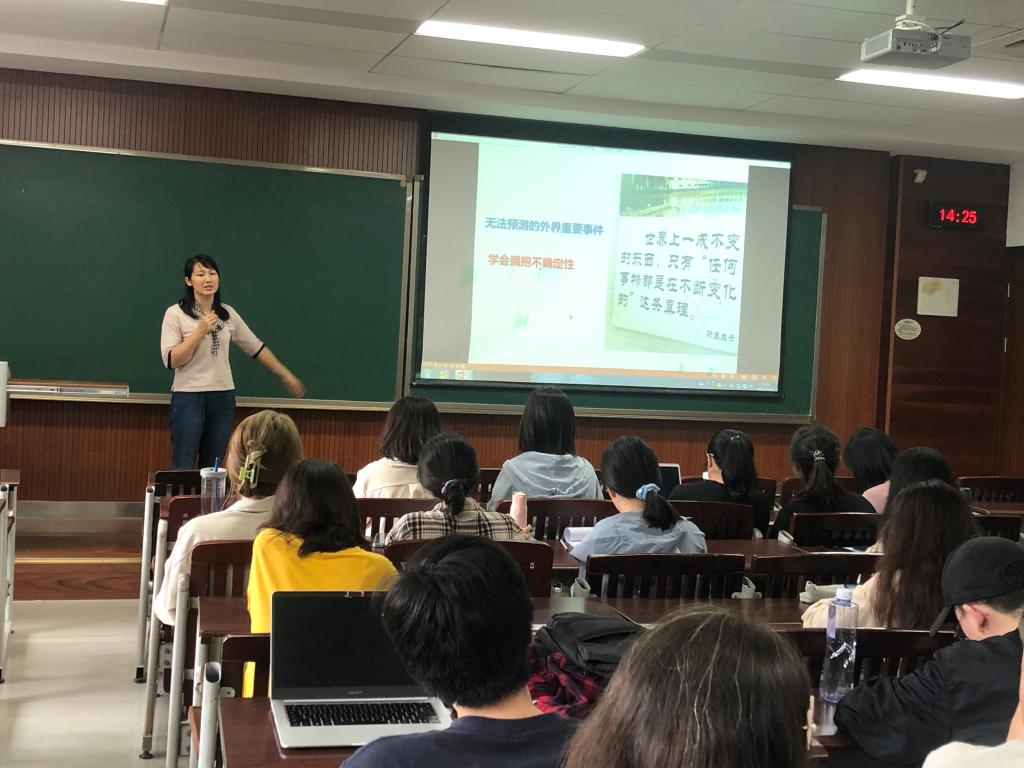 关于推免、考研和留学的升学专题指导,有幸邀请到学校学生职业发展与就业指导中心副主任刘卫红老师,刘老师凭借其丰富的升学指导经验,以三个关于升学与就业的典型案例作为前奏,引出“升学=攀登=勇气+坚持”这一主题,深入浅出地分析了保研、考研以及出国这三种升学路径选择的特征,以这三种目标途径为独立单元,在“一问一答式”互动中阐明了当下同学们应当密切关注与查漏补缺的事项。在推免模块,刘老师面面俱到地为同学们分析了内外推免的条件、时间节点等相关事宜,提醒大家多多留意各类院校举办的“夏令营”等能够展示自身学习与科研能力的活动;在考研模块,刘老师以本校数据为例,在强调当下考研竞争压力愈发沉重的同时,更鼓励备考求学的同学们不要“遇难而退”,前程依旧是一片光明的;在出国留学板块中,刘老师让大家扩宽思维、大开眼界,冲击名校的同时也不要忽视一些必要的因素。在交流互动环节中,2018级的田明昊同学向刘老师询问关于院校选择的一些细节问题,刘老师也做出了客观详细的回答。