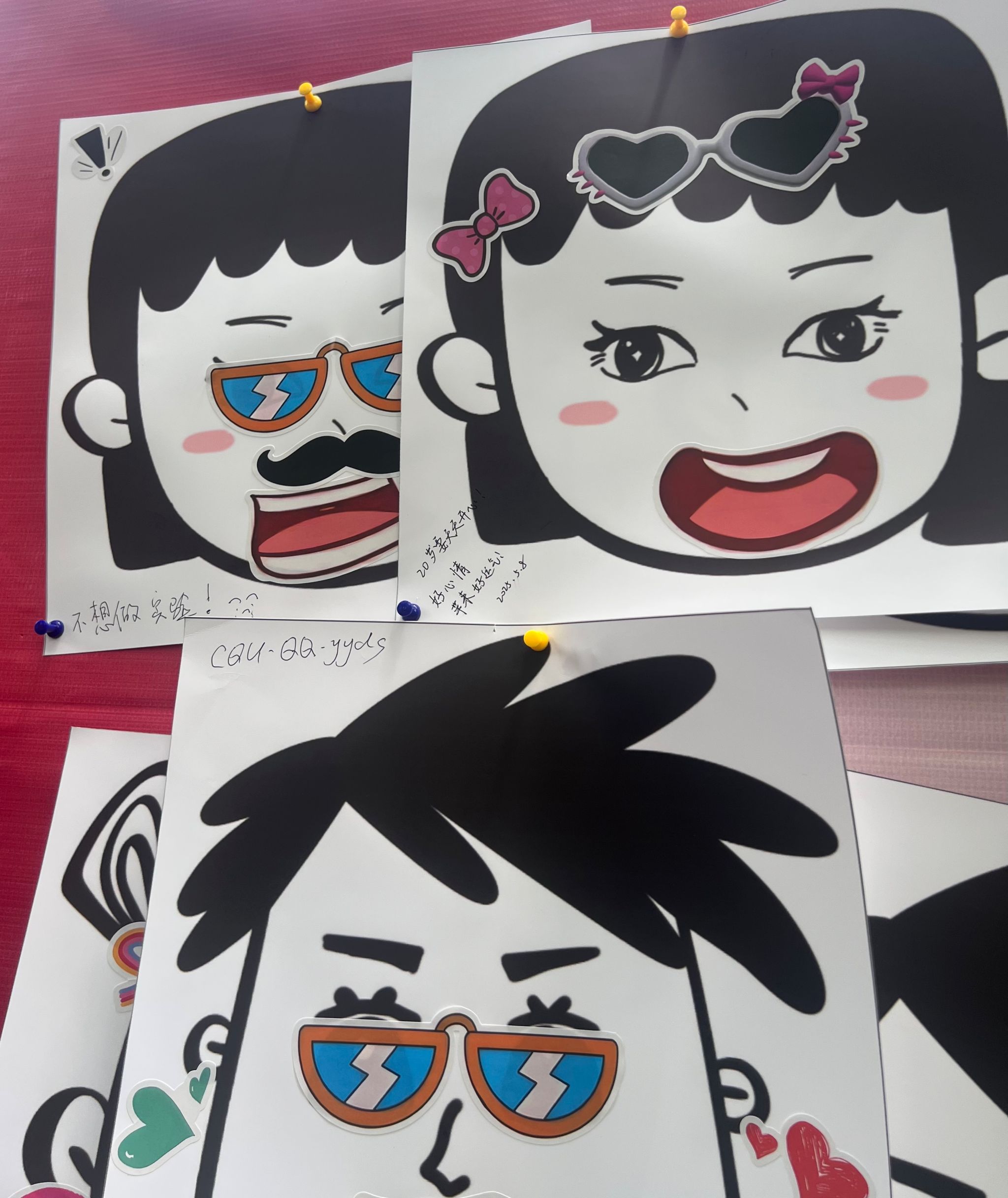 参与者们可以选择自己喜欢的人物头像和微笑的嘴型贴纸,随后蒙上眼睛,在原地转三圈后,在身边人的指导下,将笑脸贴纸贴在正确的嘴巴位置,然后可以自由粘贴笑脸装饰物、手绘表情或写下祝福寄语在“我们的微笑纪念墙”打卡,短短四个小时,纪念墙便被上千张专属微笑填满。
