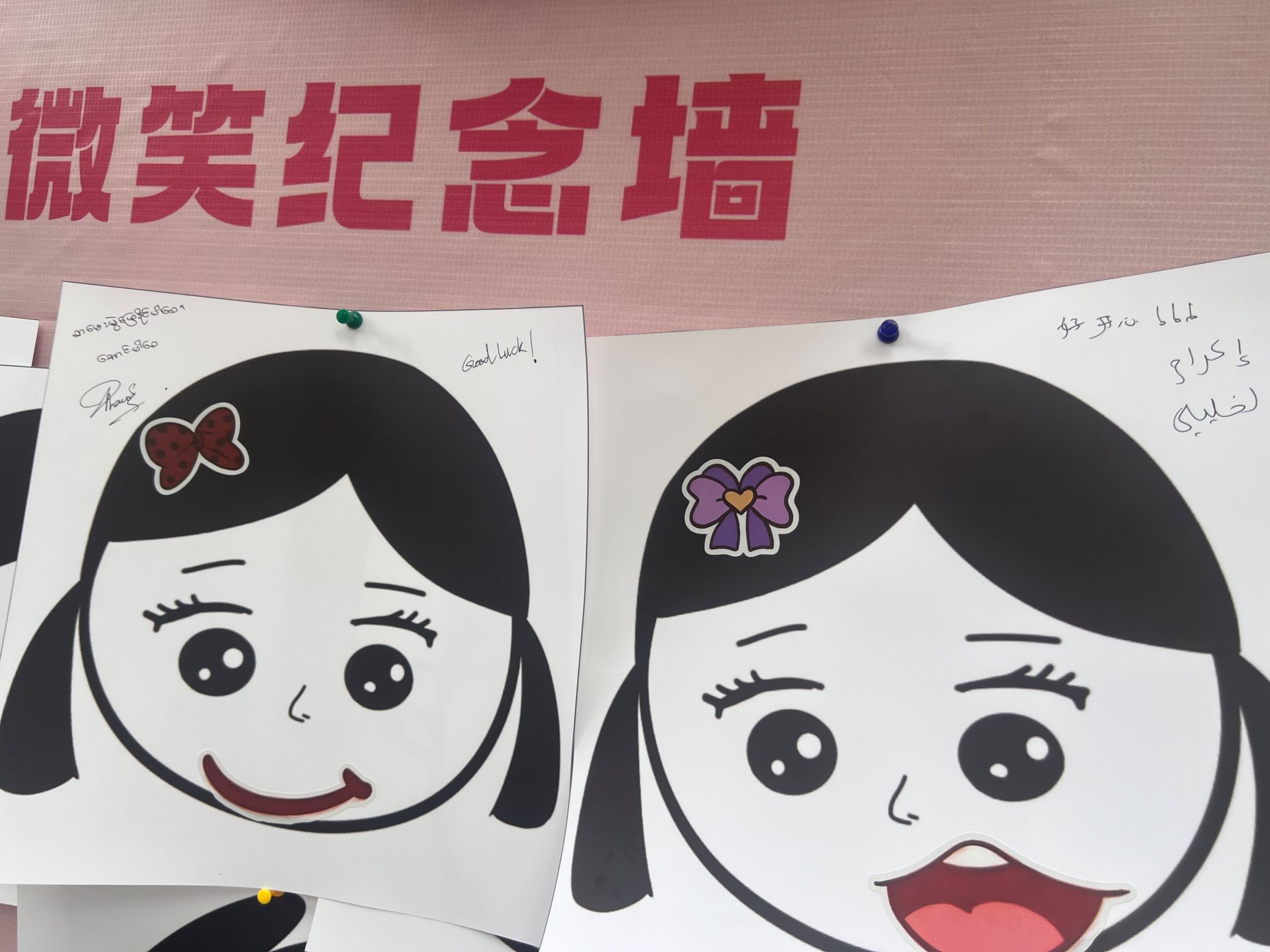 有同学在笑脸旁配上“每天都要开心呀”、“微笑是世界上最美的语言”;几名留学生用母语写下“微笑无国界”,并画上俏皮表情符号。参加活动的24级大一同学发出感慨:“看到这么多充满活力的笑容,感觉一整天的心情都变好了!”