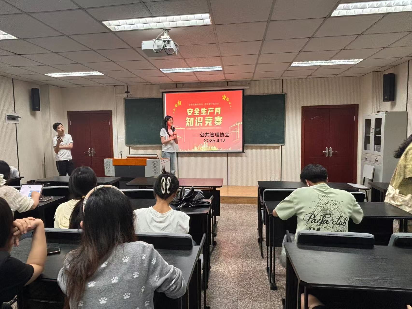 2025417日星期四,一场别开生面的小型安全知识竞赛在公管大楼102成功举行,此次竞赛由公共管理协主办,旨在进一步巩固上次安全知识教育的成果,提升参与者的安全意识与应对能力。