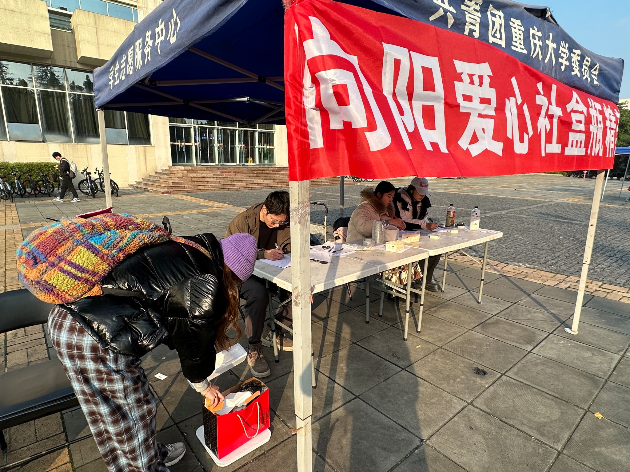 学生向阳爱心社“盒瓶精英”策划组精心策划,并携手青年志愿者协会与公共管理协会共同主办的“盒瓶精英,为爱相逢”志愿活动,在电影天堂