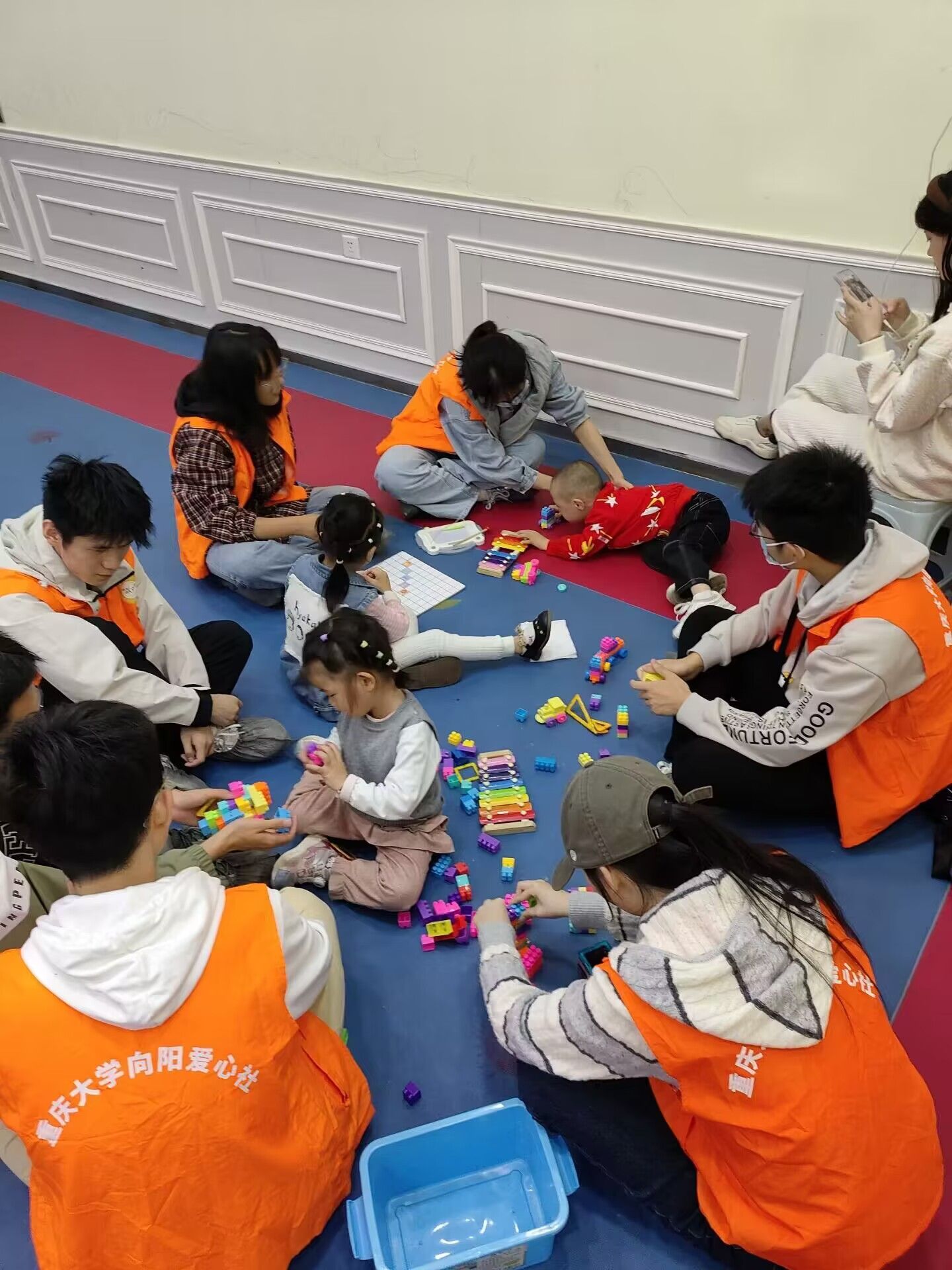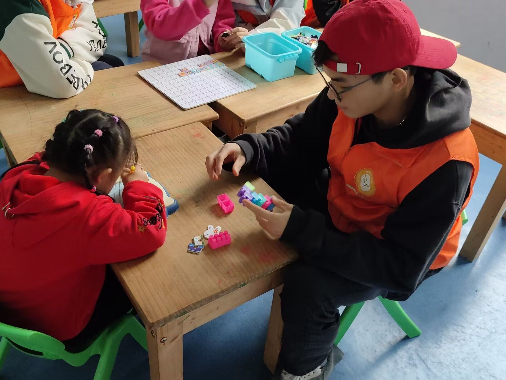 参与活动的志愿者们都本着认真负责的态度,与小朋友们度过了一个愉悦难忘的下午。活动过程中,由两到三名志愿者对接一位小朋友,保证每一位小朋友都有人陪伴。一些孩子通过磁画板表达出自己内心的奇思妙想,线条之间尽显童真;在陪小朋友们搭积木的同时,志愿者仿佛也找到了些许童年的味道;有的小朋友特别活泼,满屋子地跑,志愿者就不辞劳苦地紧跟其身后,全力保护小朋友的安全。几个小时转瞬即逝,当小朋友们面对分别时,显得恋恋不舍,这也算是对志愿者的认真投入的嘉奖吧。