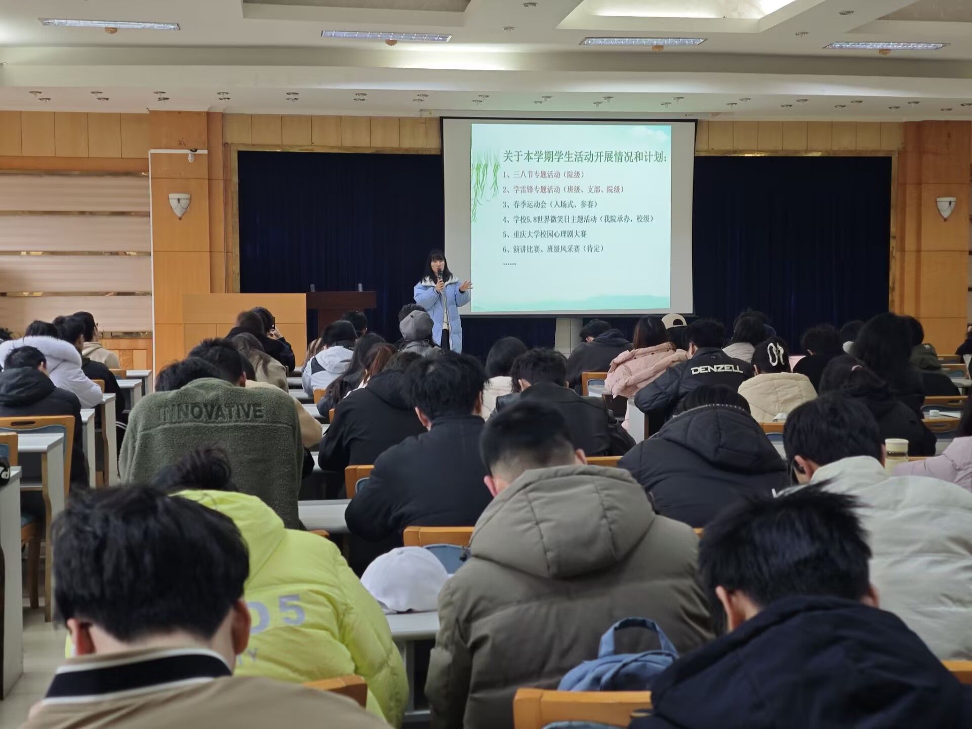 会议伊始,徐柳老师对上个学期的学习情况进行了全面回顾,详细分析了各专业的挂科情况,指出各班级在学习中存在的问题,强调了班风、学风建设的重要性。同时提醒同学们要时刻关注自己的学业成绩,确保个人所修学分达到学校毕业要求,并提醒大家把握好本学期提升成绩绩点的机会,为未来的发展打下坚实的专业基础。