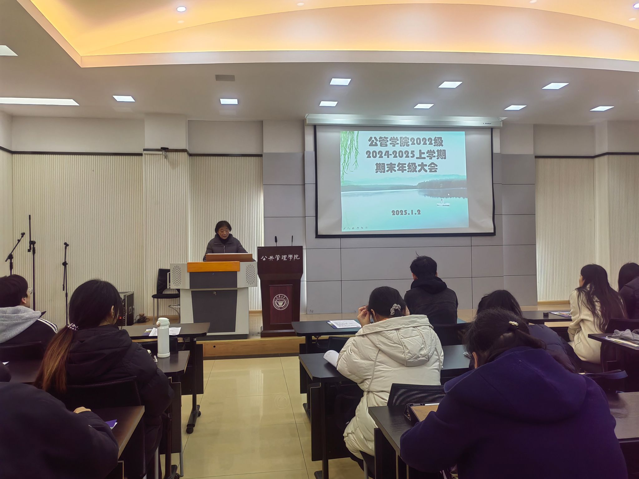2022级2024-2025第一学期期末年级大会在学院楼102顺利召开。本次大会由学办主任兼22级辅导员王丽娟主持,22级全体同学参与了本次年级大会。