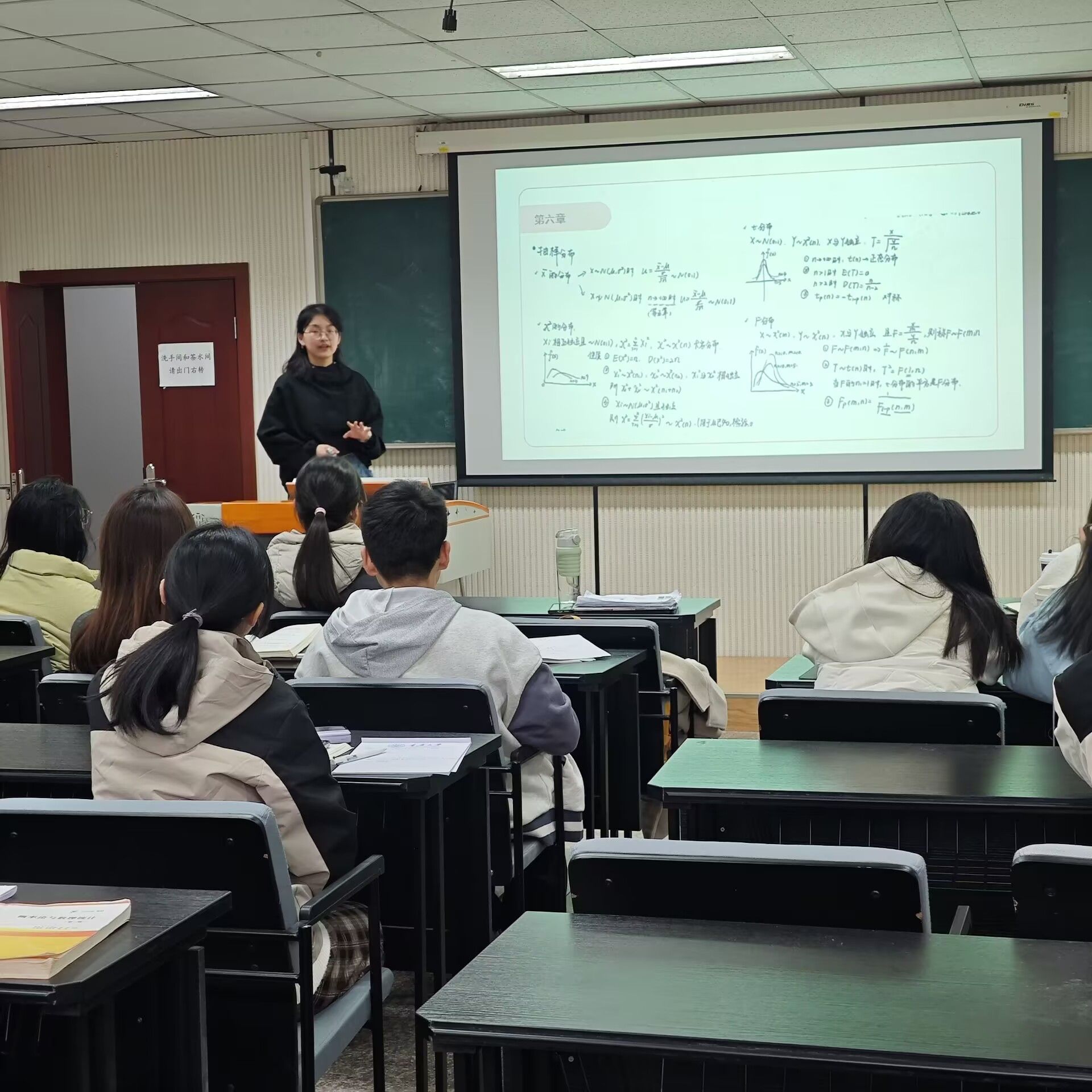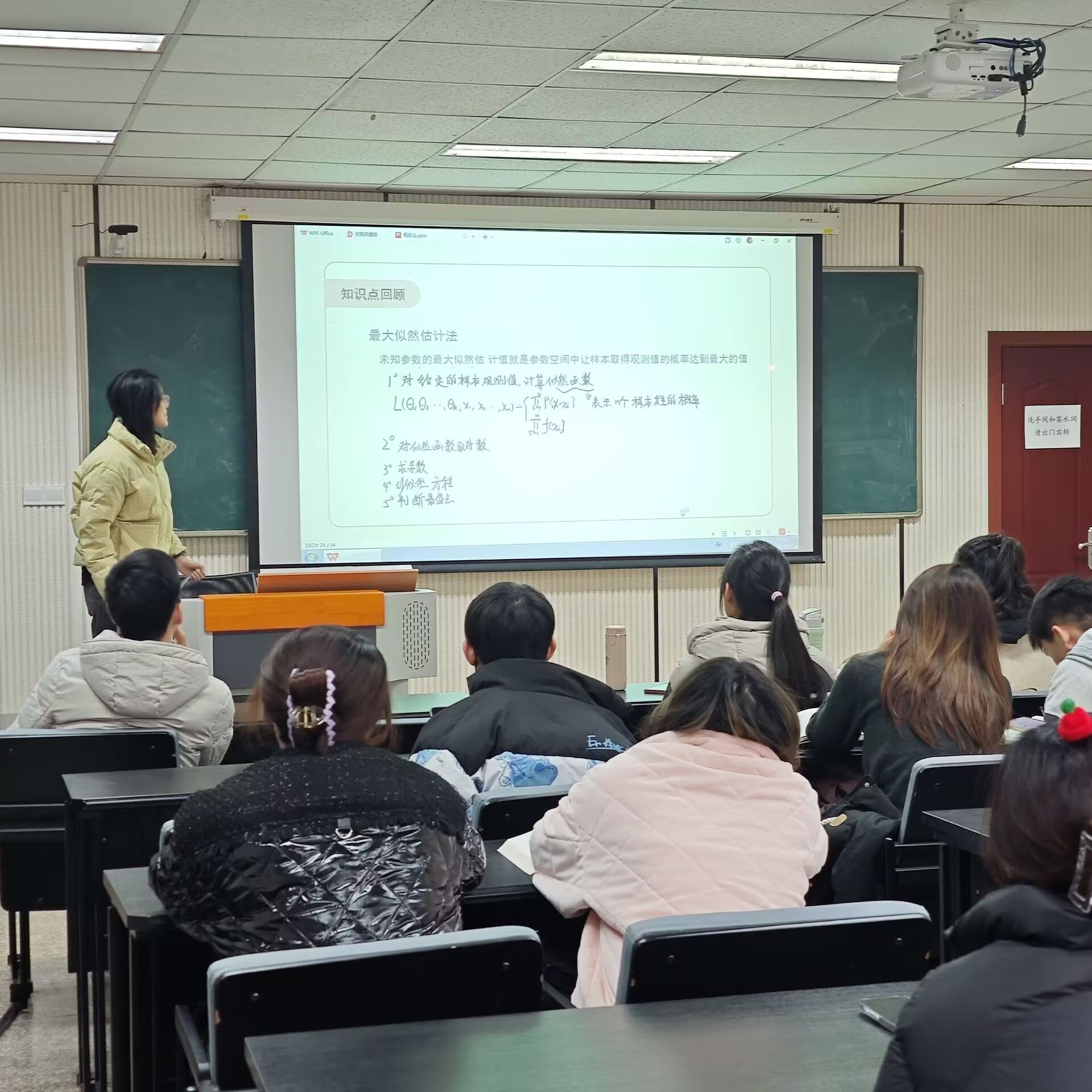 “学霸工作室”第二期《概率论与数理统计》期末考前辅导在学院106教室顺利举行,主讲人为学院2022级经济学专业的许诺,姜熠和徐琪琦,团委书记兼21级、23级辅导员徐柳老师及本科2023级学生到场参与。