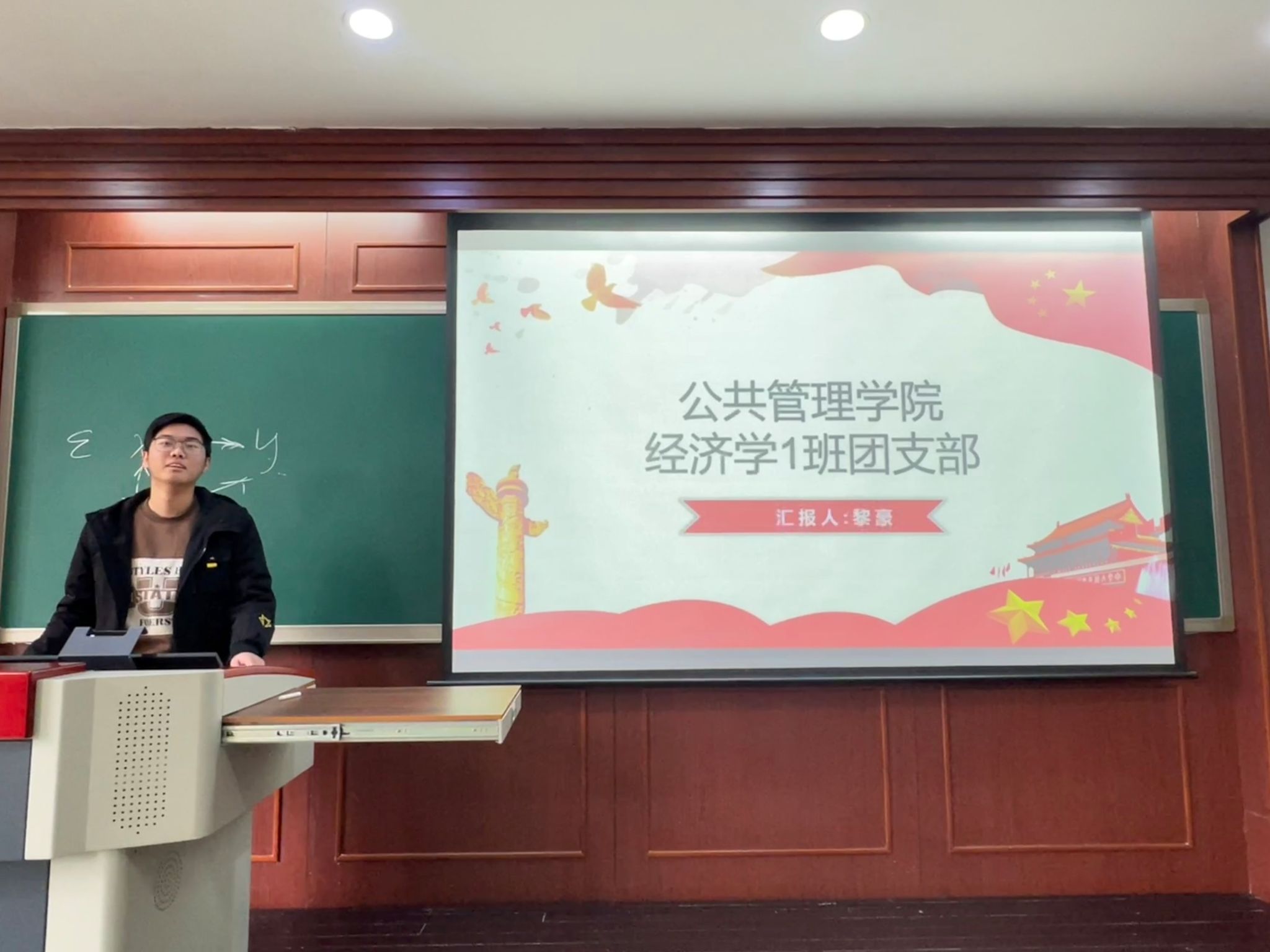 2022级经济学1班团支部在第五教学楼308教室内召开了“科技引领青年路 学子同绘复兴图”主题团日活动。本次团日活动由2022级经济学1班团支部书记黎豪主持,2022级经济学1班全体成员积极参与。